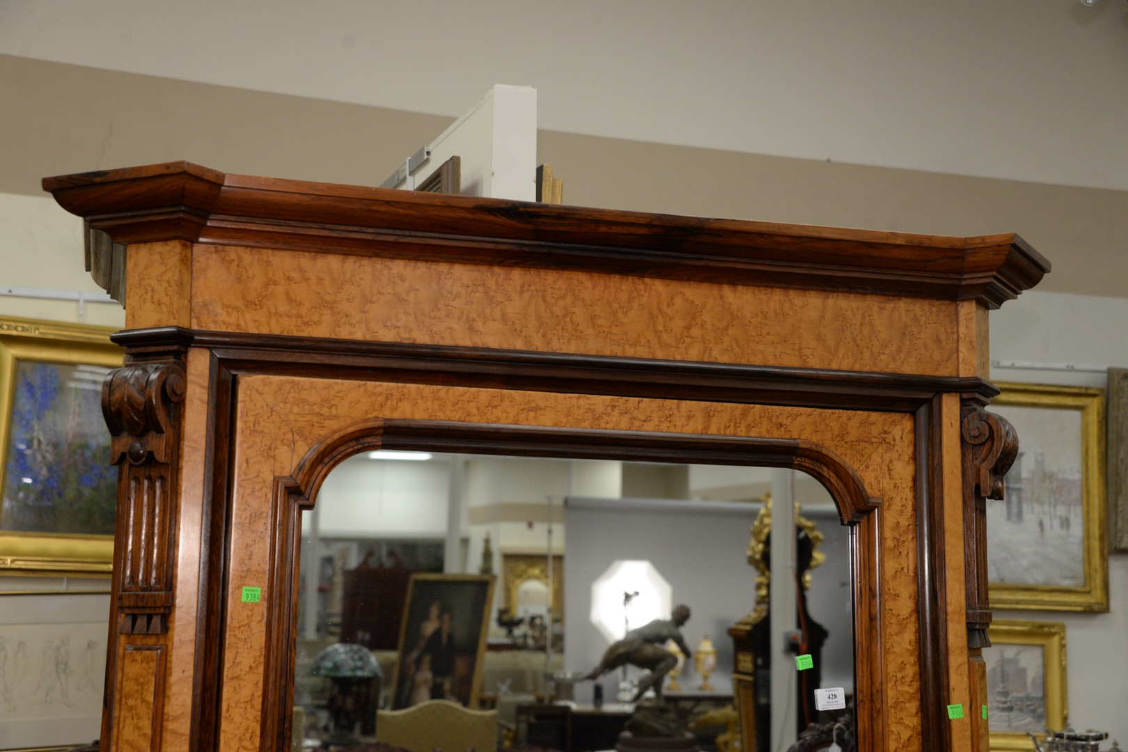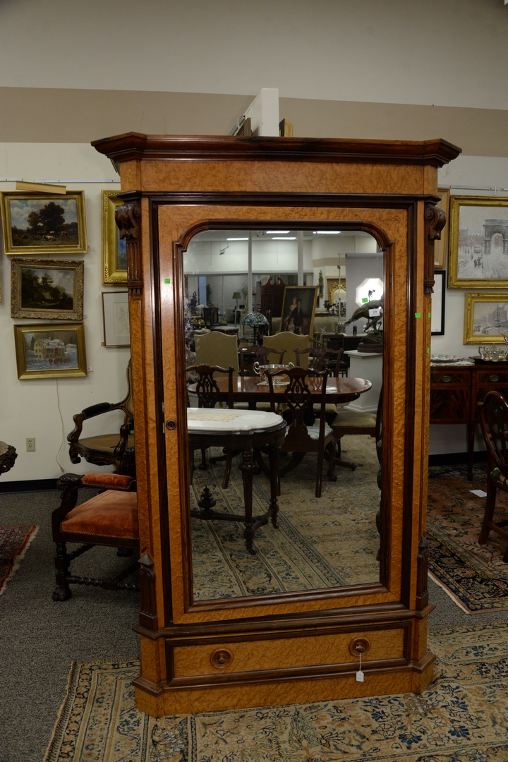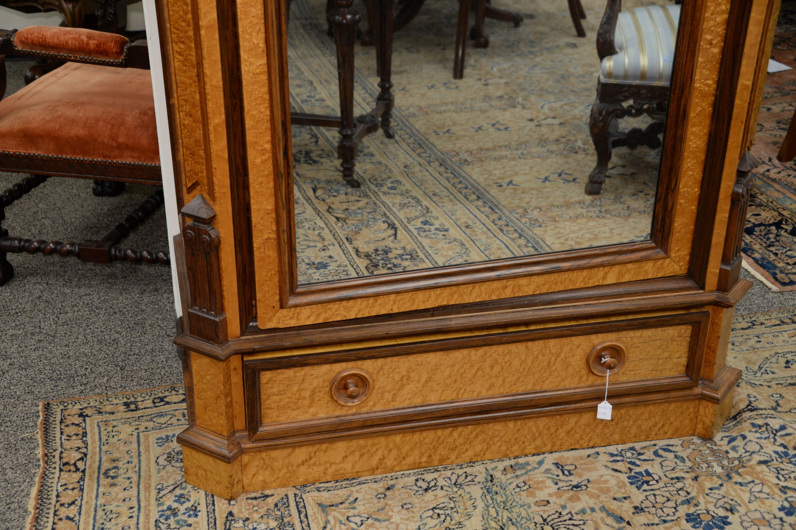 Lot 428: Victorian Birdseye Maple Armoire with rosewood trim, and mirrored door, base with one drawer height 82 1/2 inches, width 46 inches, …