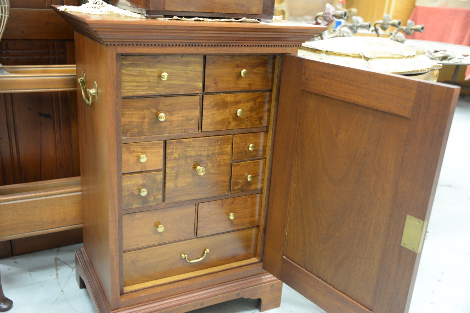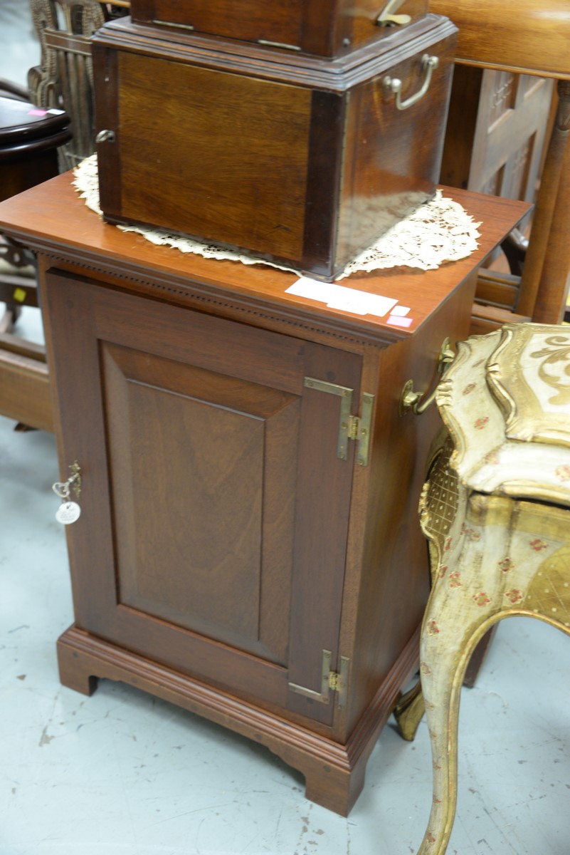 Custom mahogany one door cabinet with fitted interior. ht. 28 in. wd. 20 in.