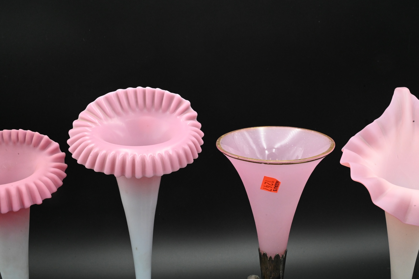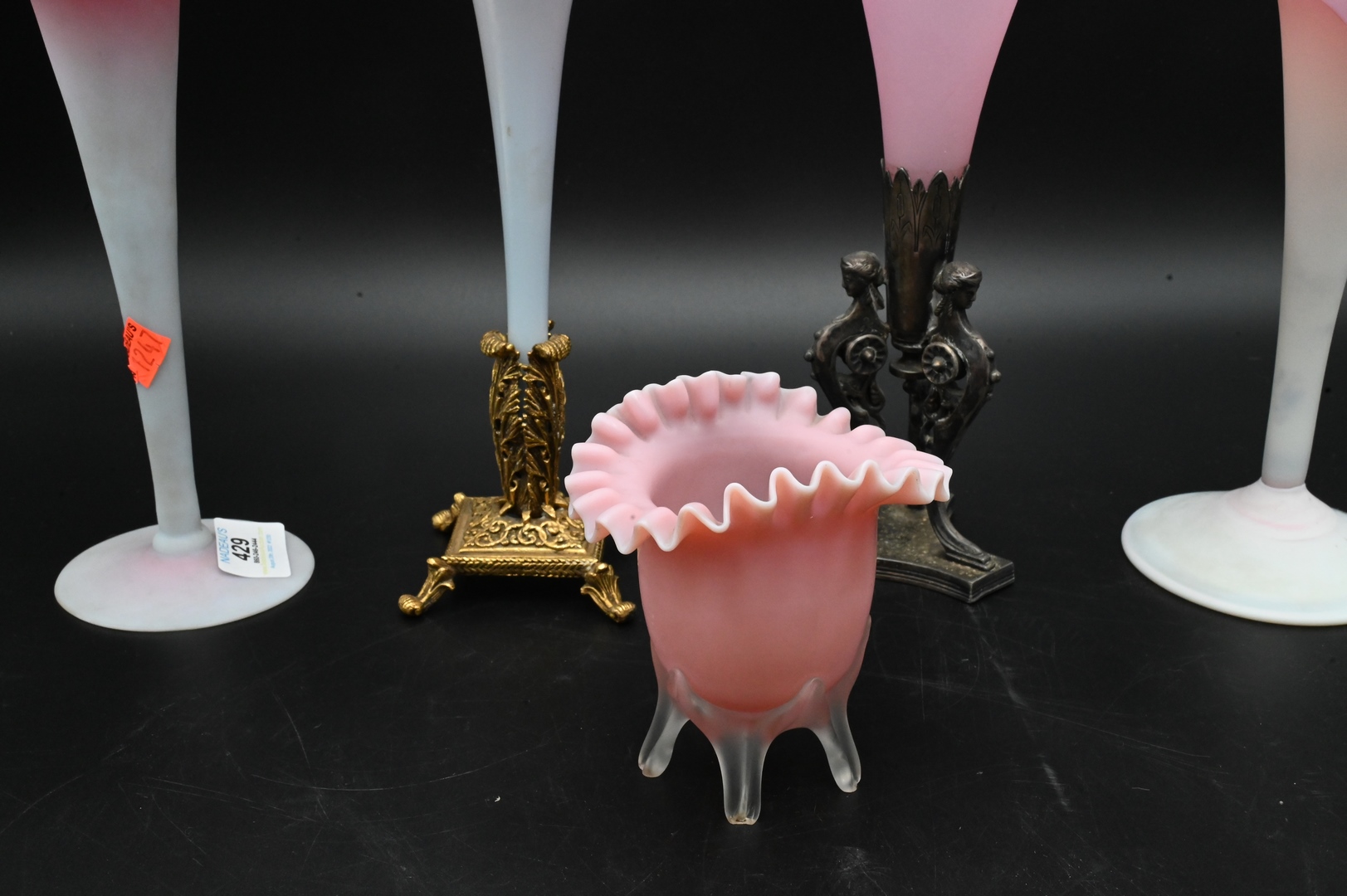 Five Piece Lot of Victorian Art Glass, height 12 1/2 inches. Provenance: From the Estate of Elwyn W. Lemon, Enfield, Connecticut.