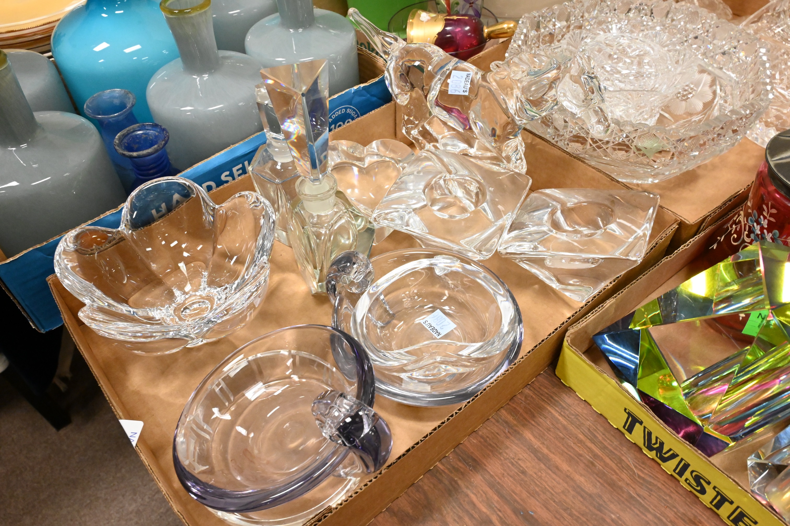 colored glass cars, dinner bells, perfume bottles, etcetera