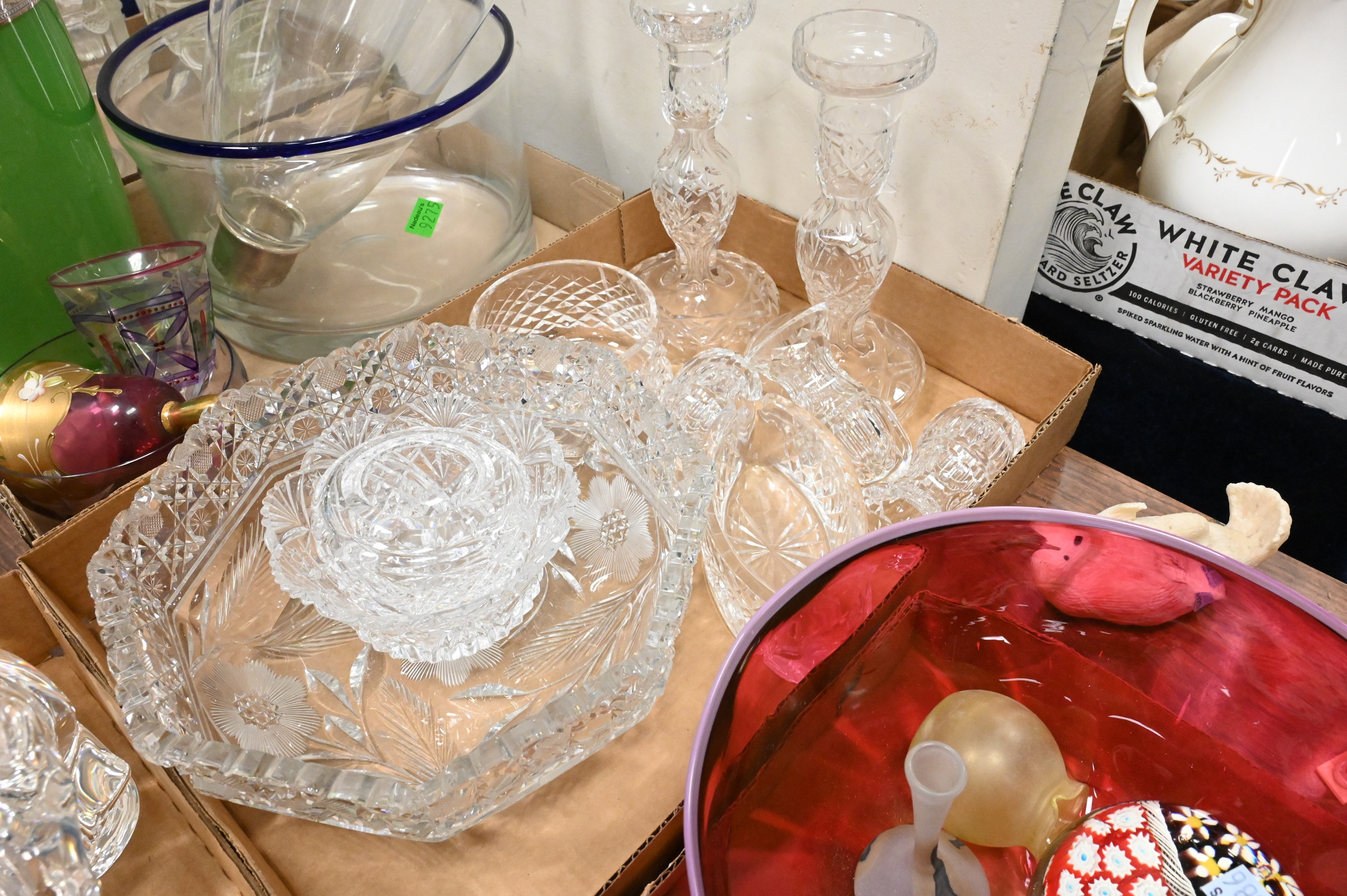 Lot 429: Five Tray Lots of Decorative Glassware to include
