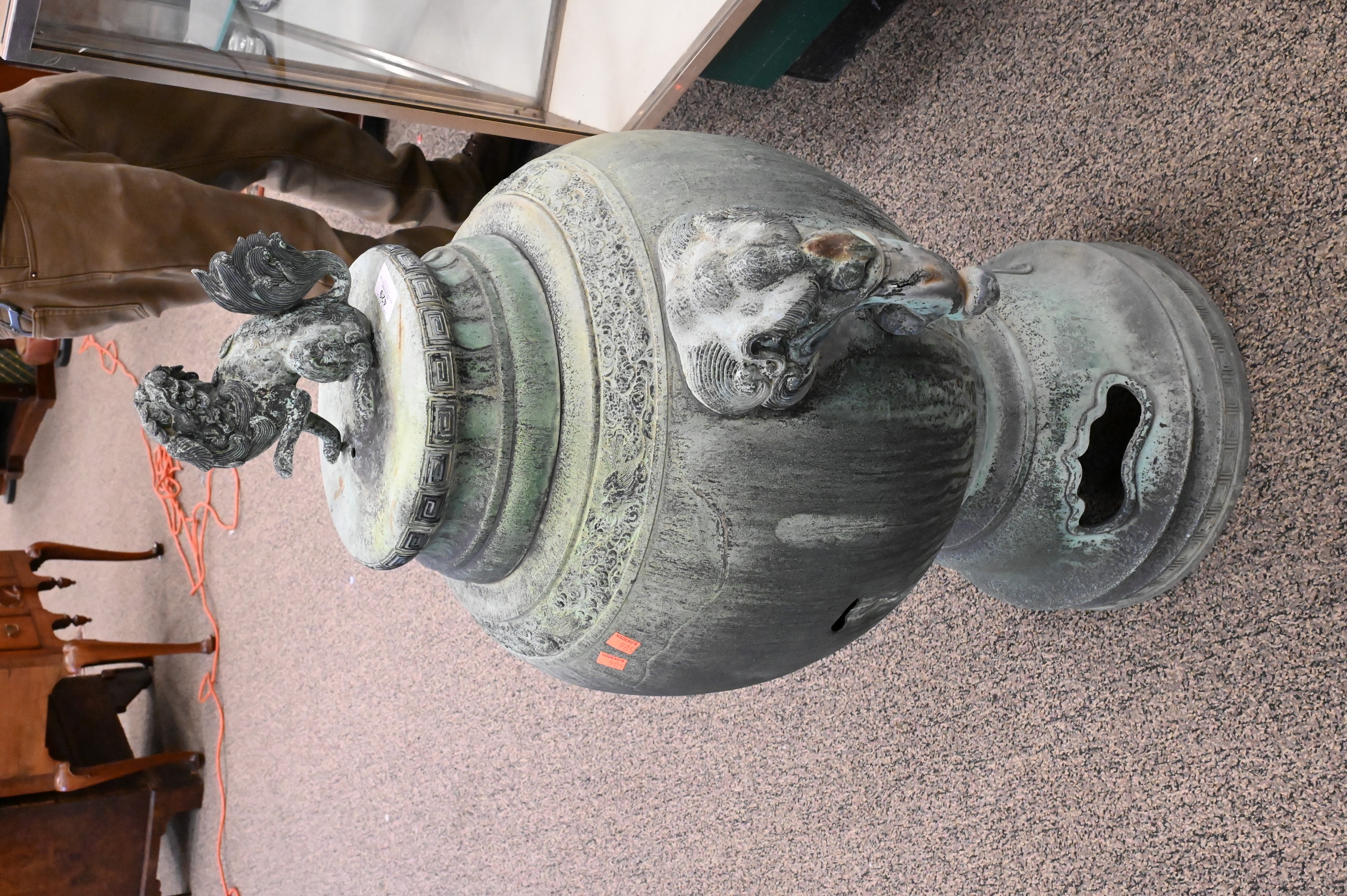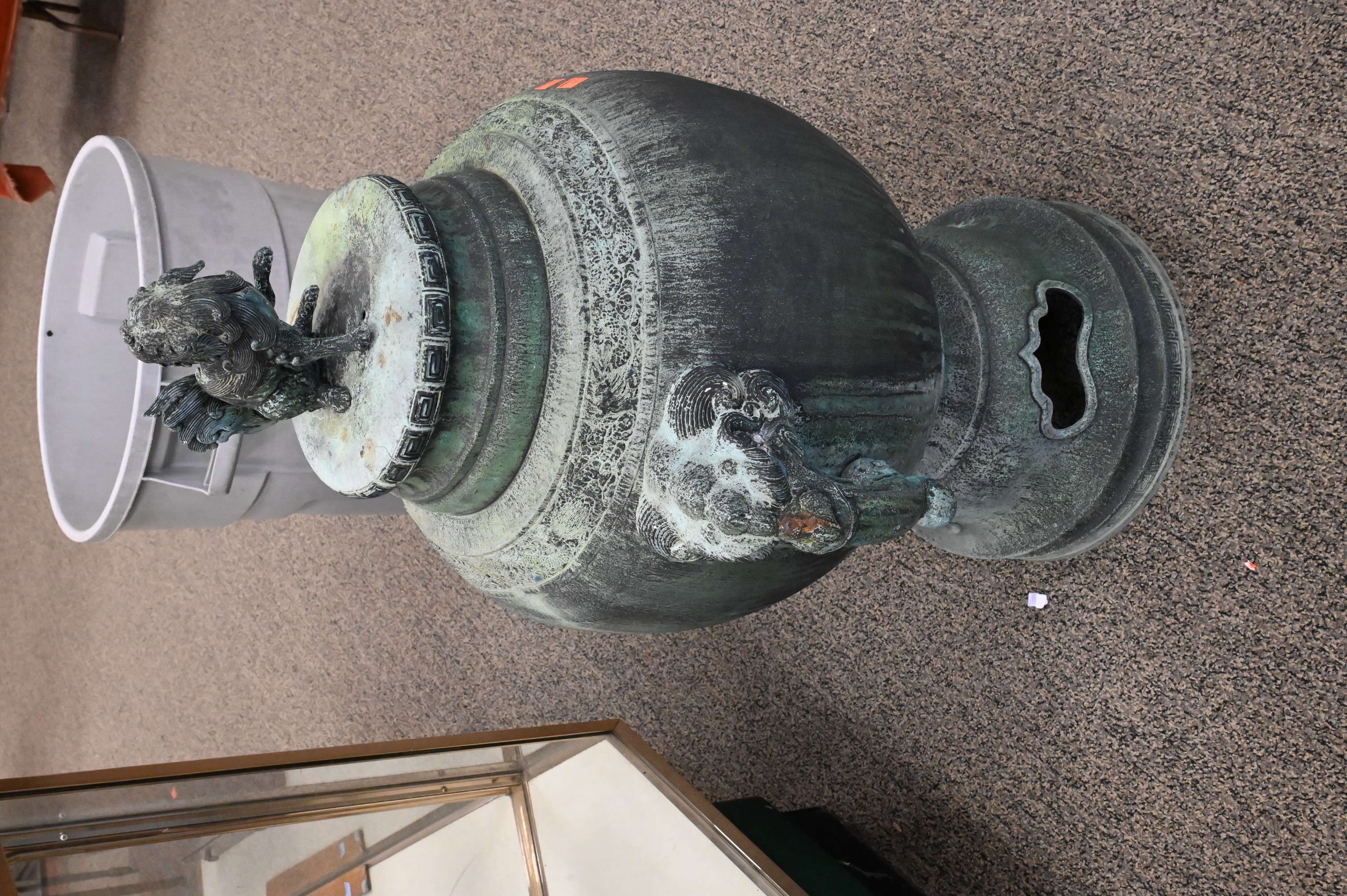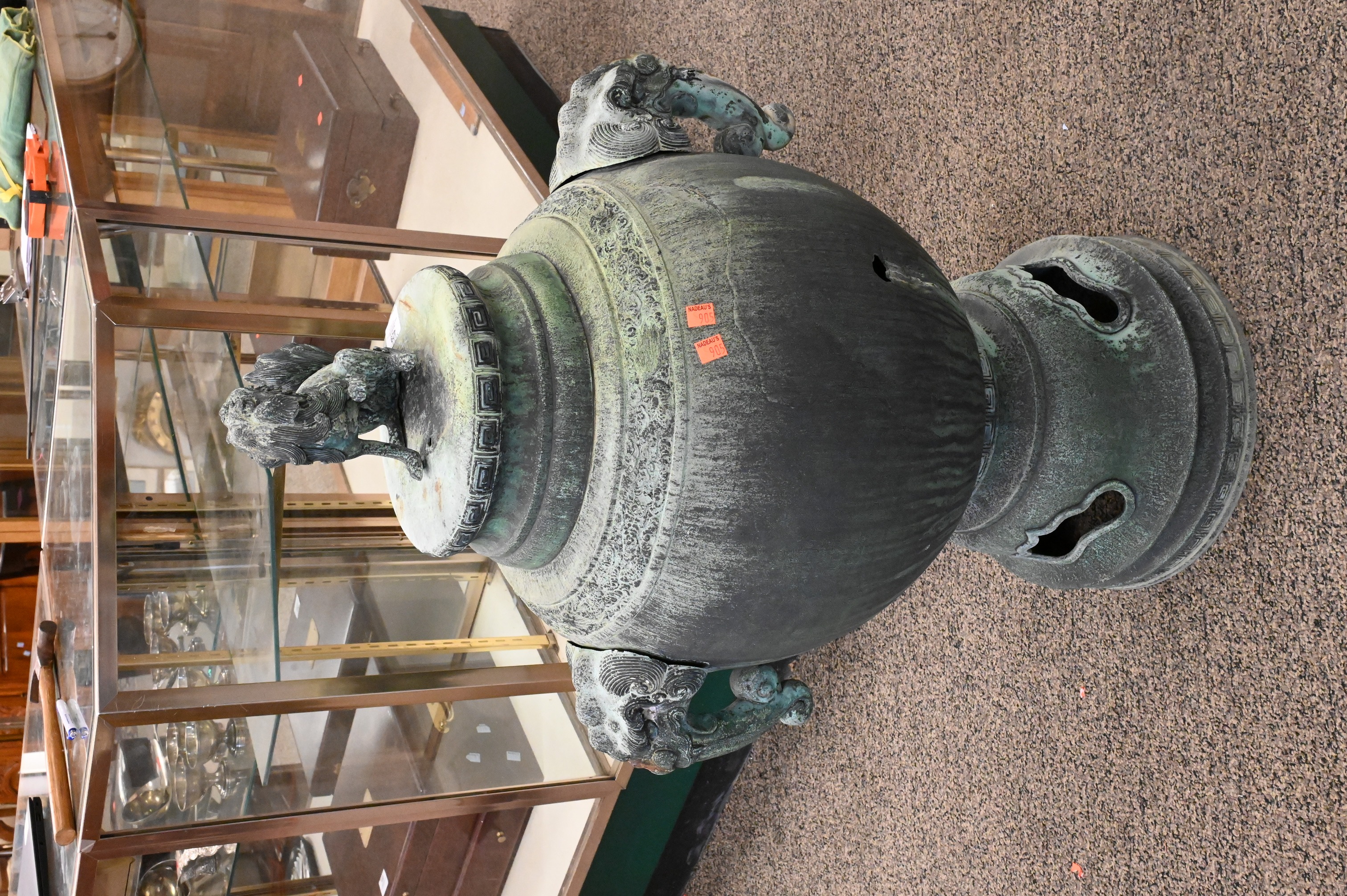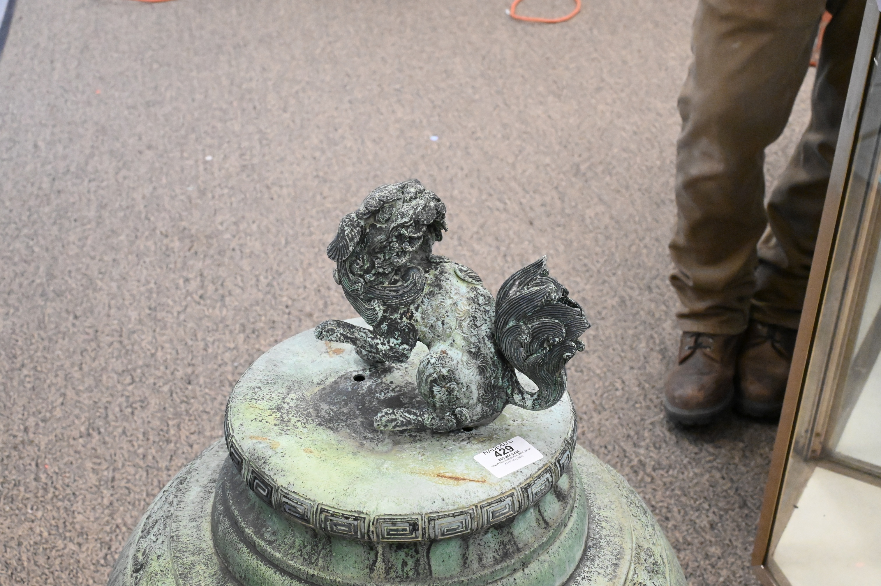 Lot 429: Large Chinese Bronze Foo Dog Urn