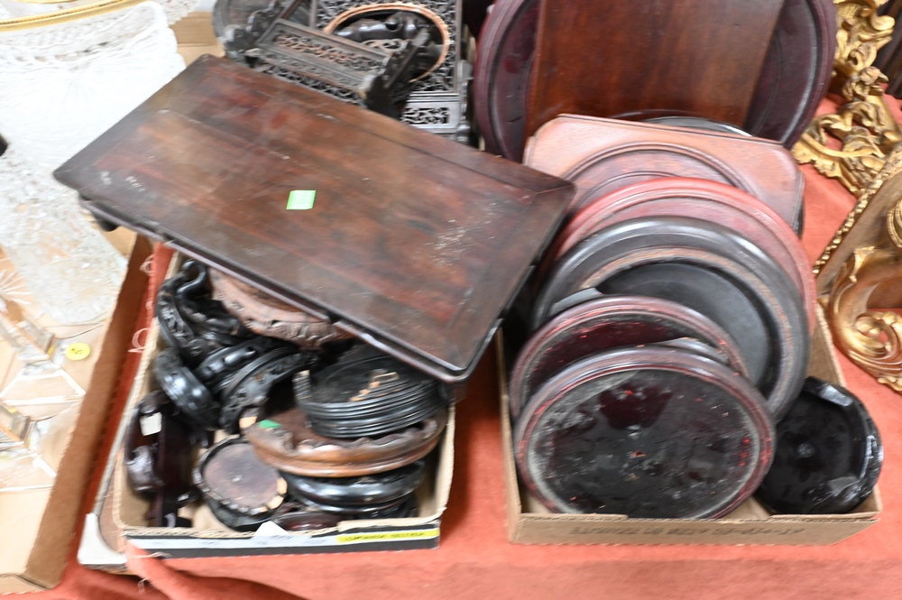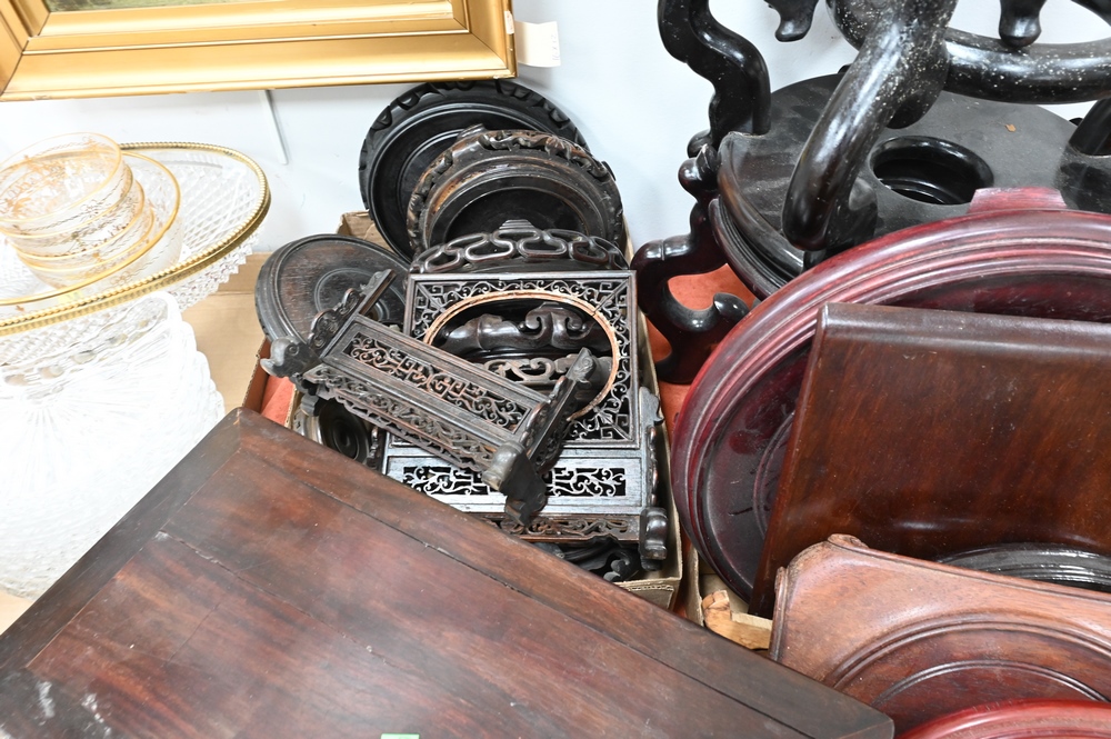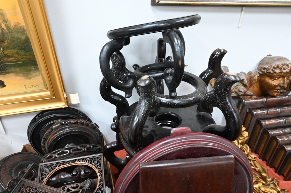 Large Grouping of Carved Wood Chinese Stands, for vases, urns and planters.