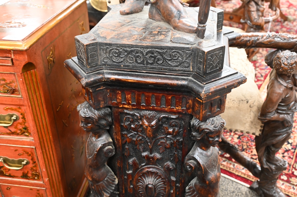 Lot 429: Pair of Large 19th Century Italian Carved Wood Figures of Cavaliers, mounted on pedestals, intricately carved in the Renaissance sty…