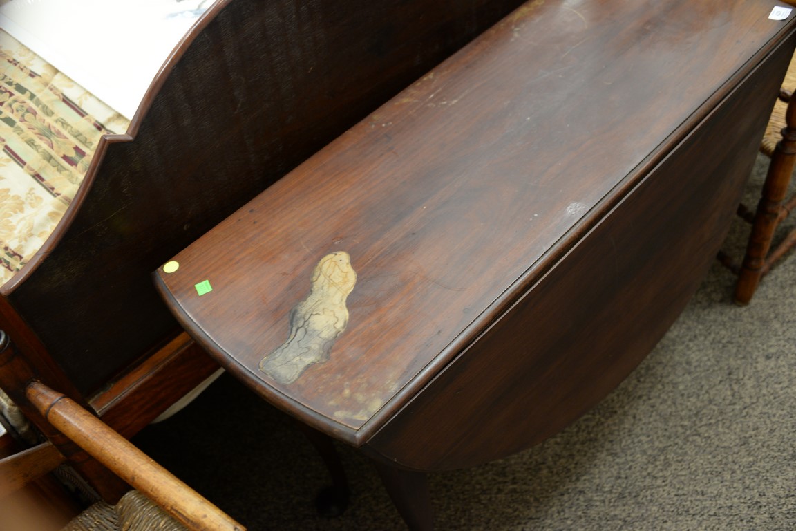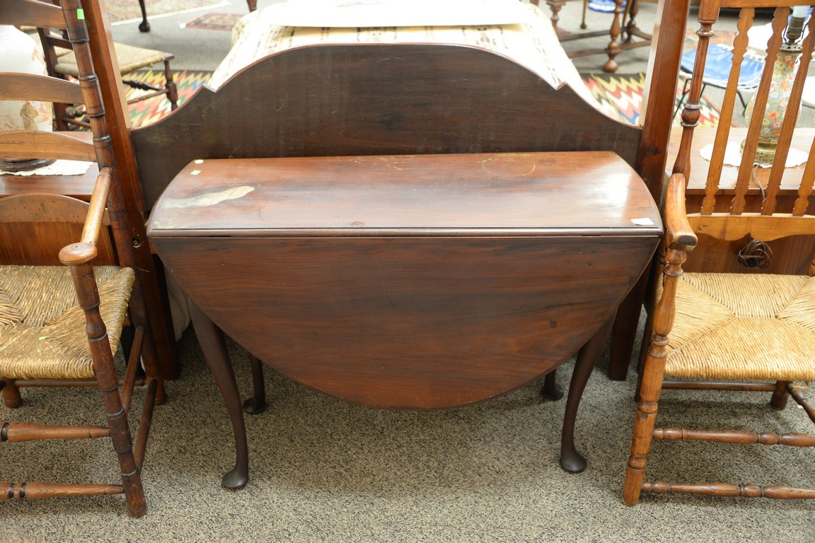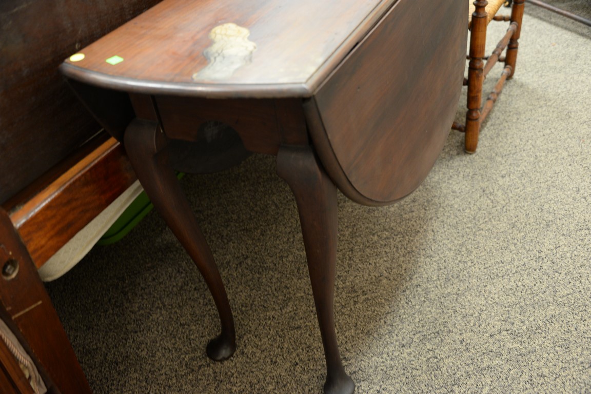 Lot 429: Queen Anne walnut table with oval drop leaves set on cabriole legs ending in pad feet, circa 1750. top removed and reversed …