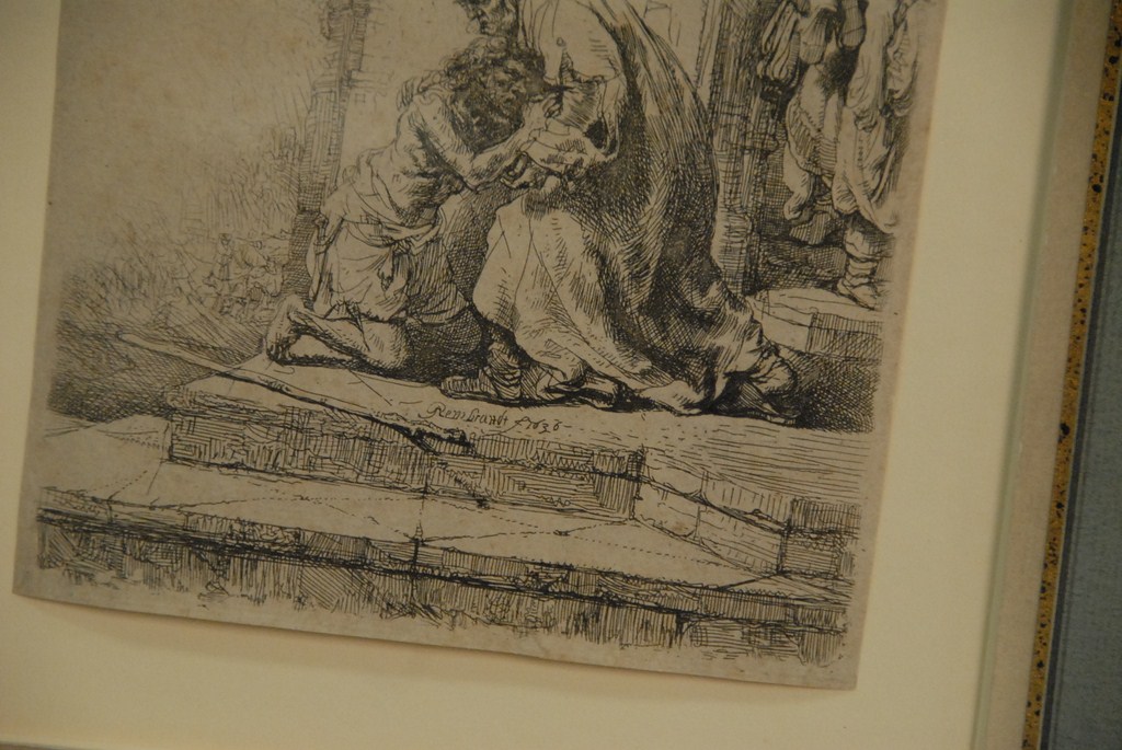 Rembrandt Van Rijn THE RETURN OF THE PRODIGAL SON etching signed center in the plateRembrandt 1636 6 1/4 x 5 1/2
