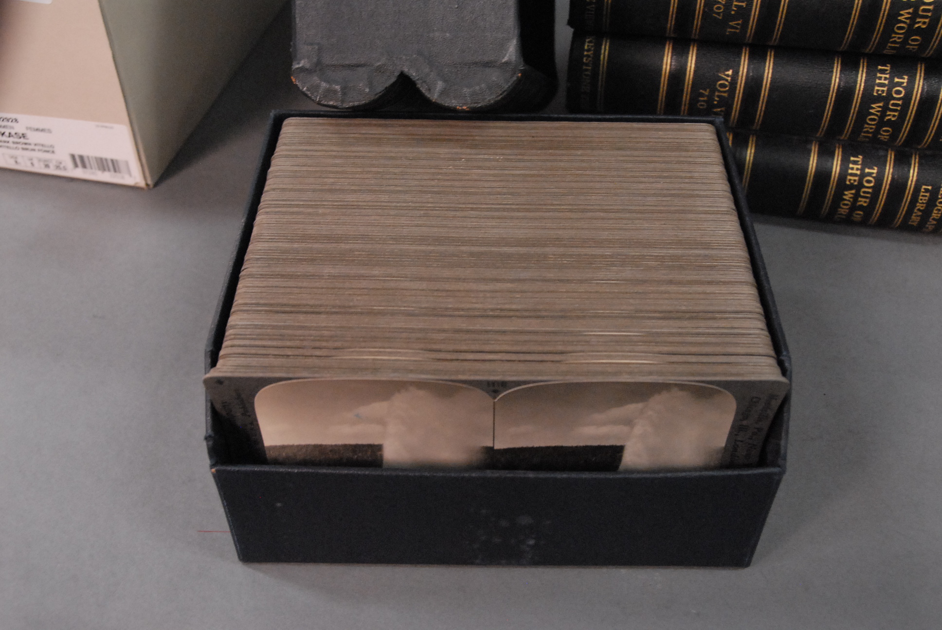 Six boxes of stereo cards tour of the world including two boxes of mostly United States along with a viewer.