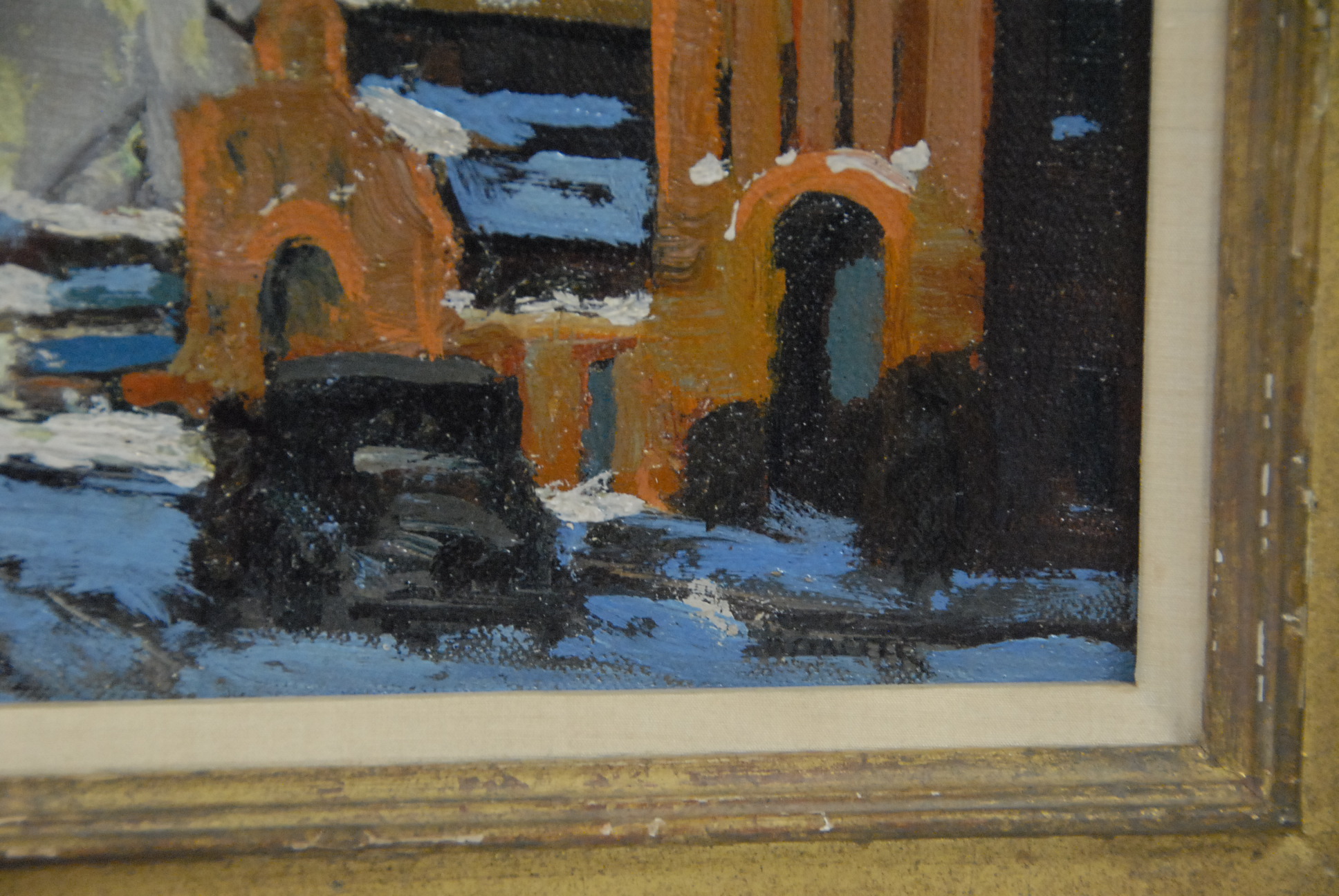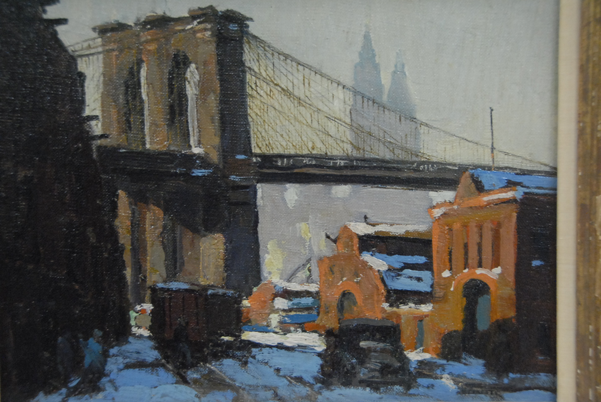 Andrew George Winter 1893-1958 BROOKLYN BRIDGE oil on canvas signed lower right Winter restretched and relined 9 1/4 x 12 1/4