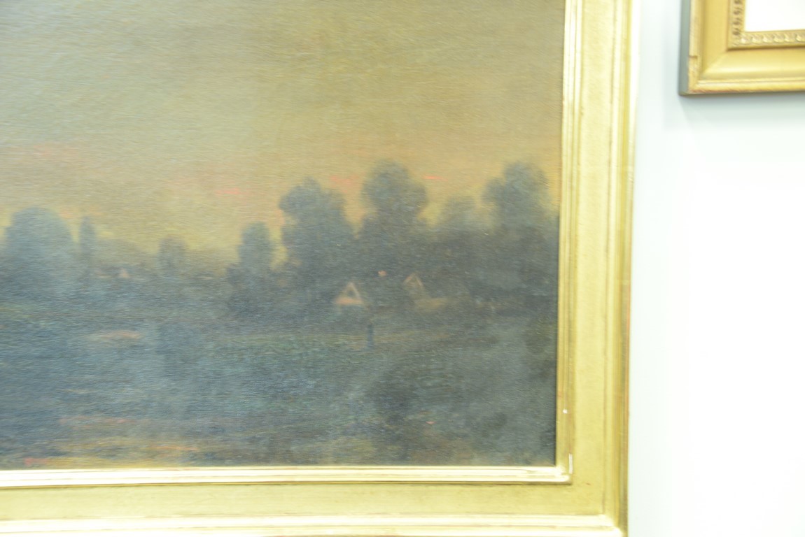 19th century oil on canvas, Sunset Night, signed illegibly lower left, relined. 14 x 20. Provenance: Estate of Arthur C. Pinto, MD