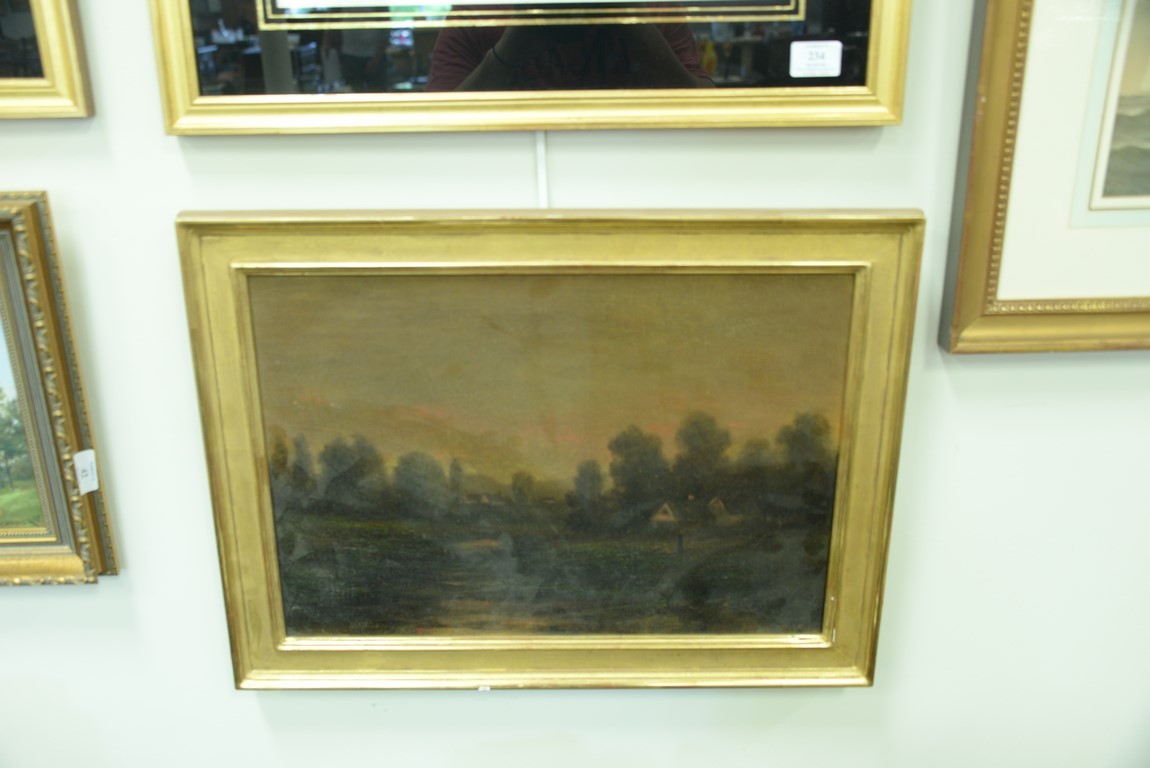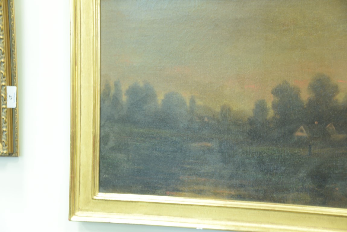 Lot 43: 19th century oil on canvas, Sunset Night, signed illegibly lower left, relined. 14 x 20. Provenance: Estate of Arthur C. Pinto, MD
