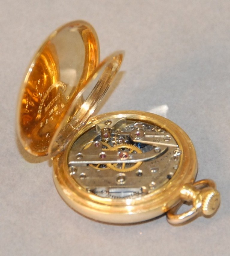 Lot 43: Bigelow & Kennard 18kt gold lapel watch.