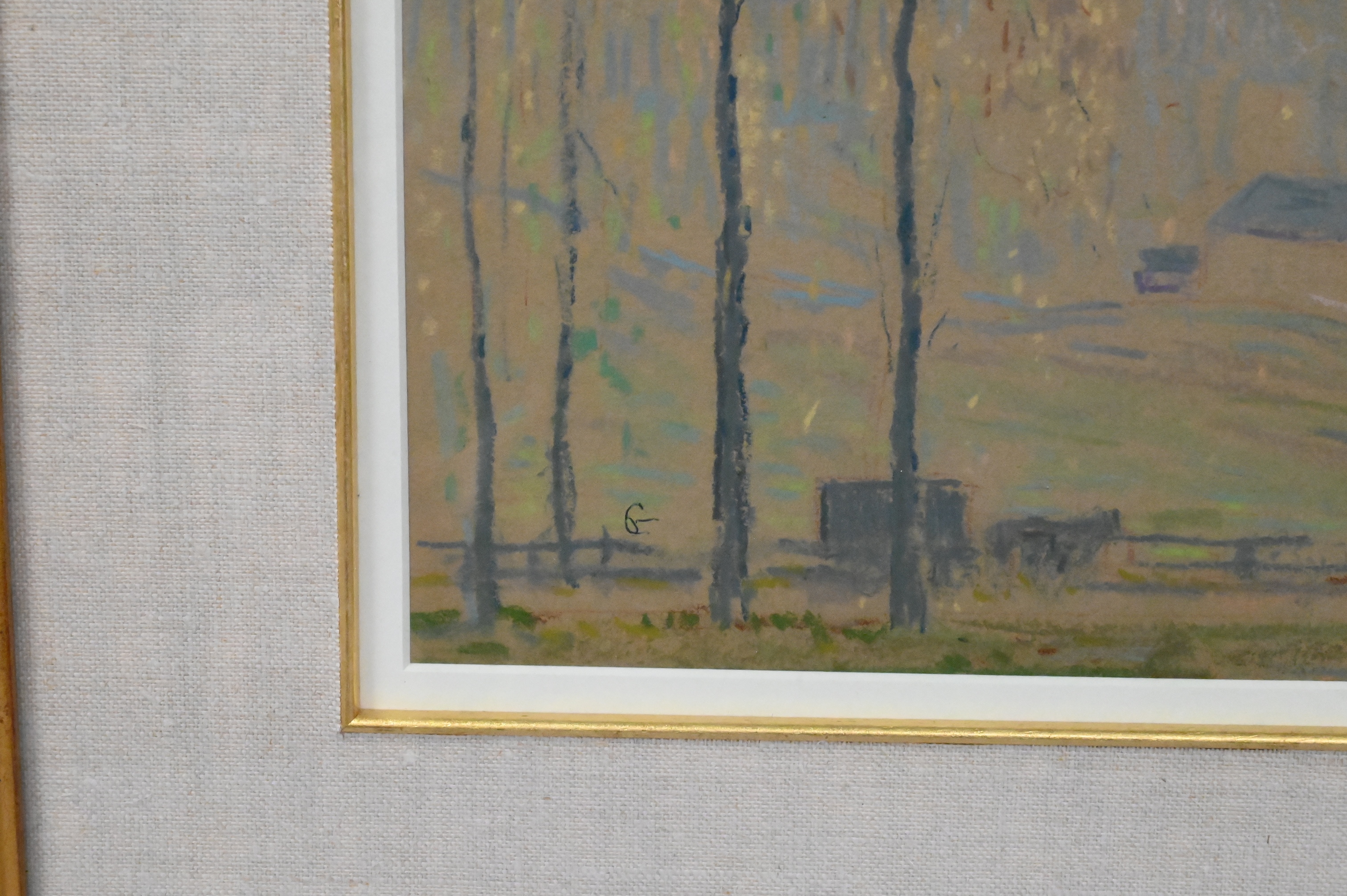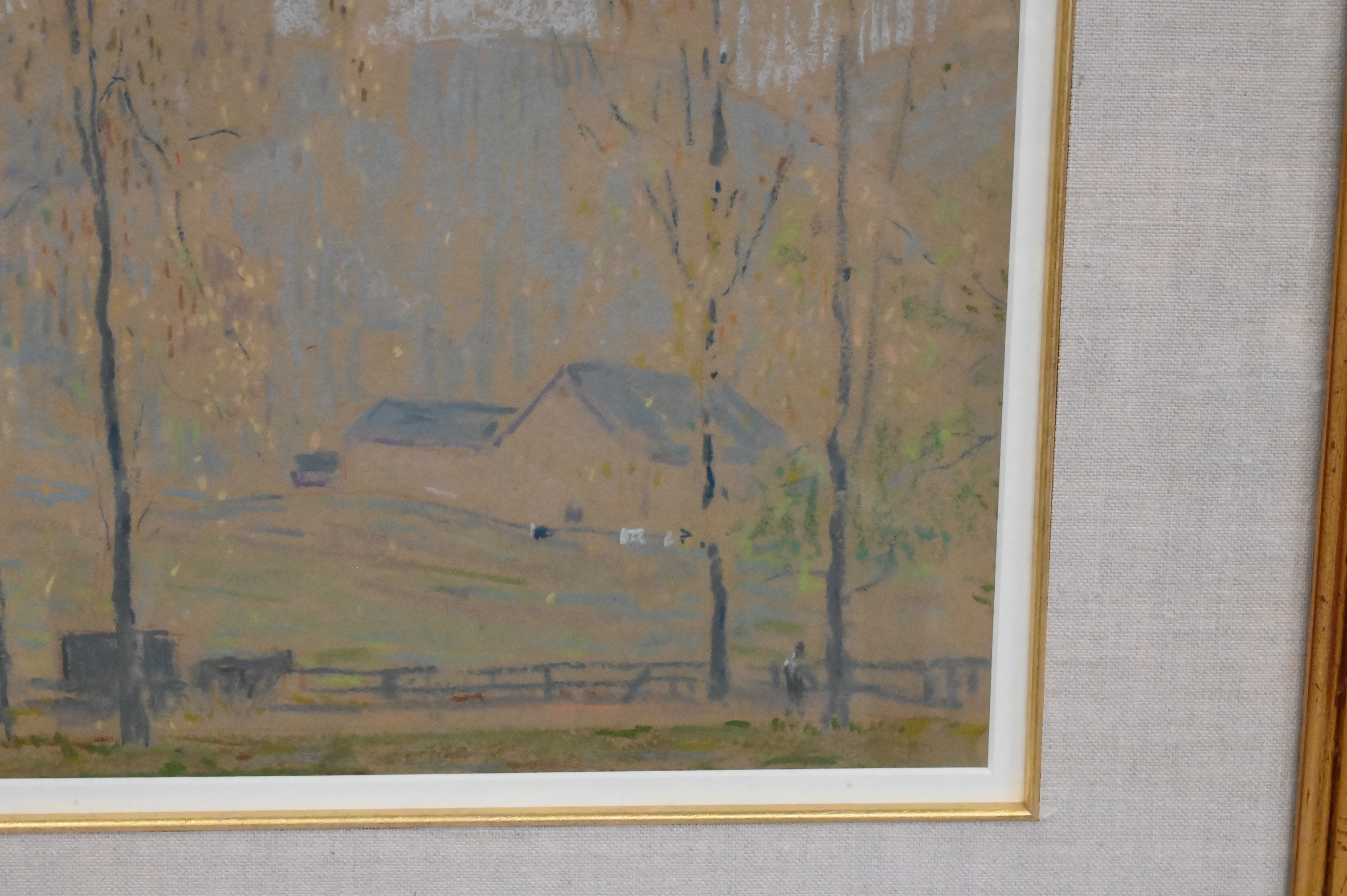 “Barn in the Valley” New England Landscape with Horse and Carriage by a Fence