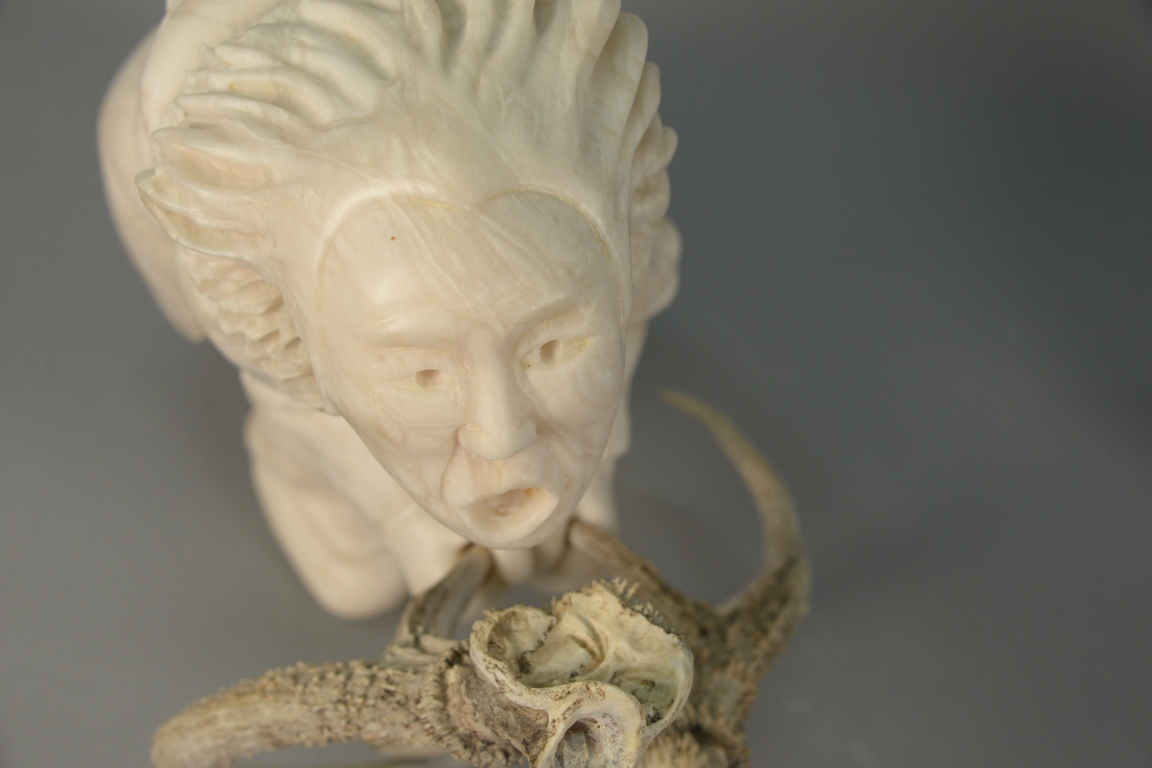 Lot 43: Inuit Eskimo carving Manasi Akpaliapik 1955 Toronto alabaster Anger intended as one of series of twelve commissioned figures dep…