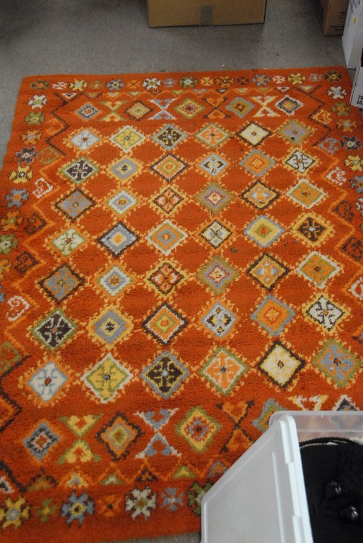 Three throw rugs hooked rug, machine made rug, and small throw rug.