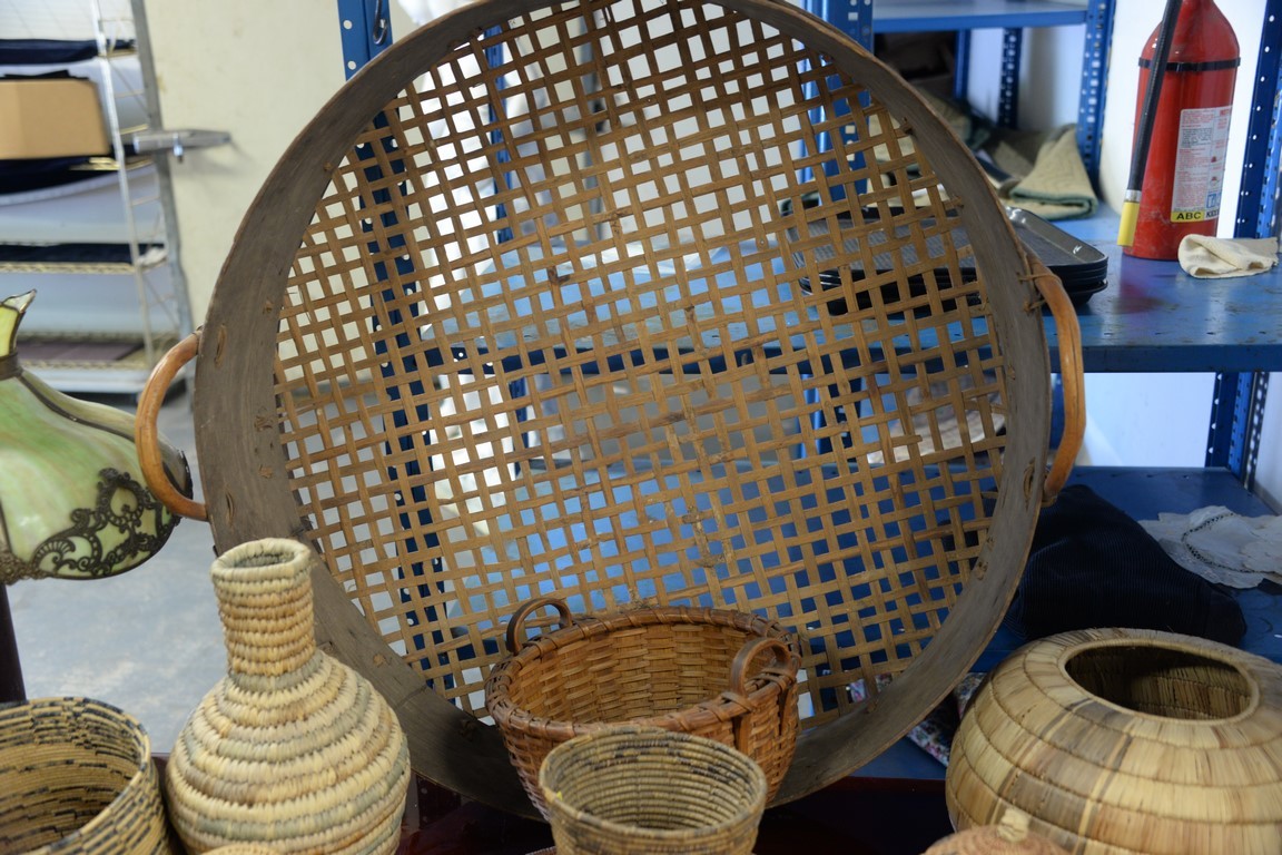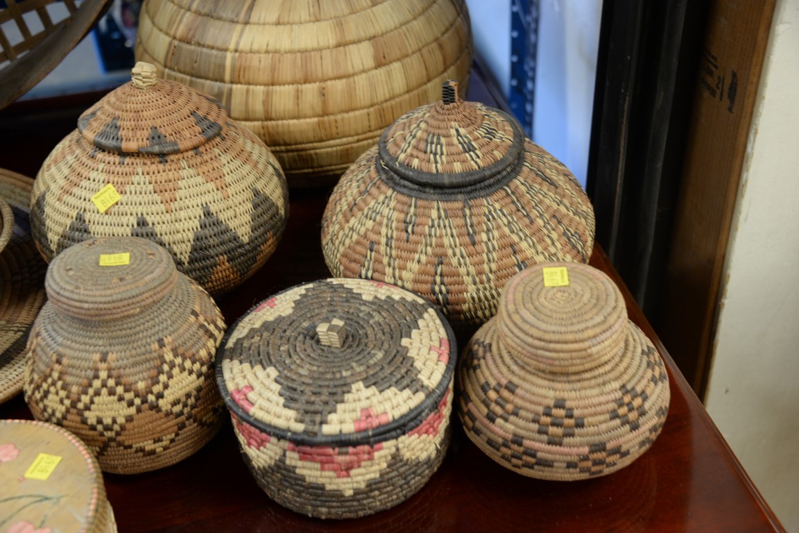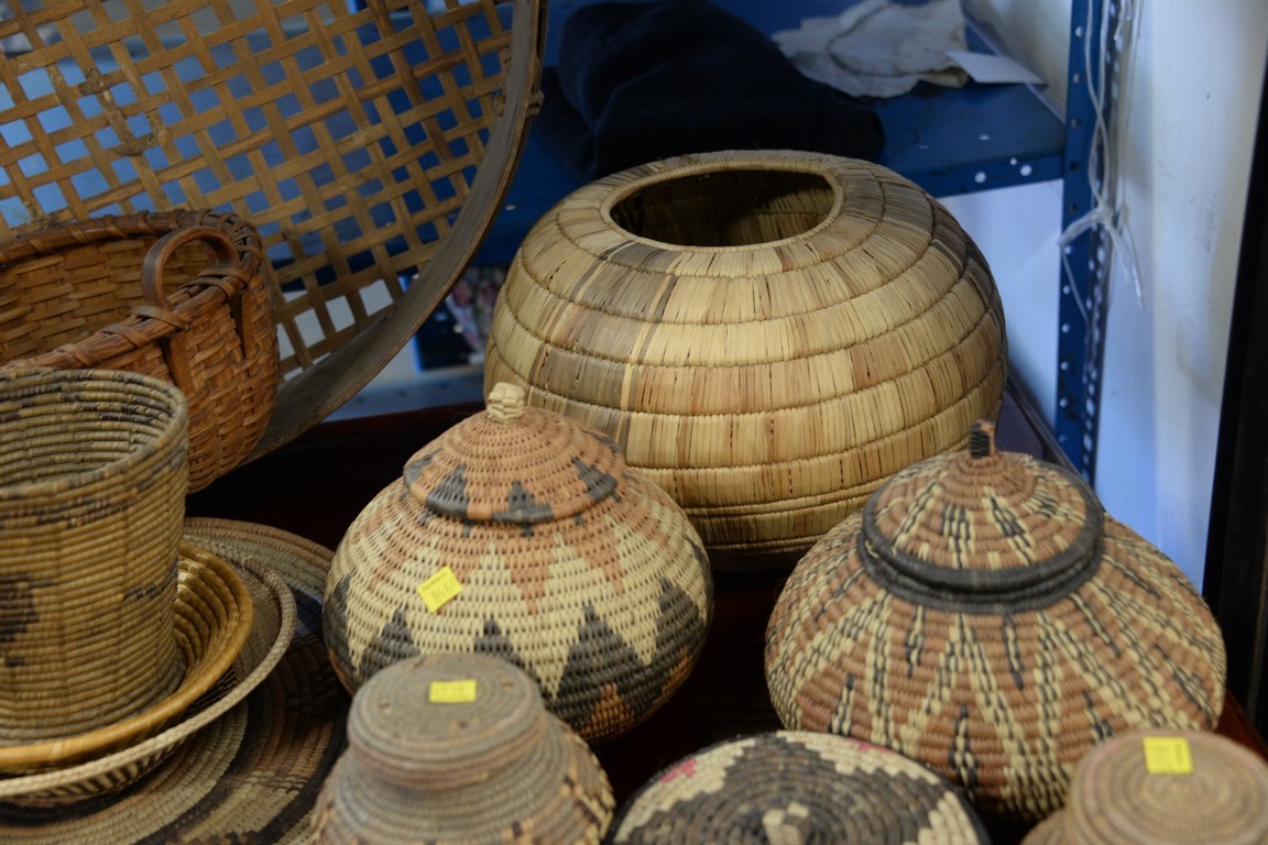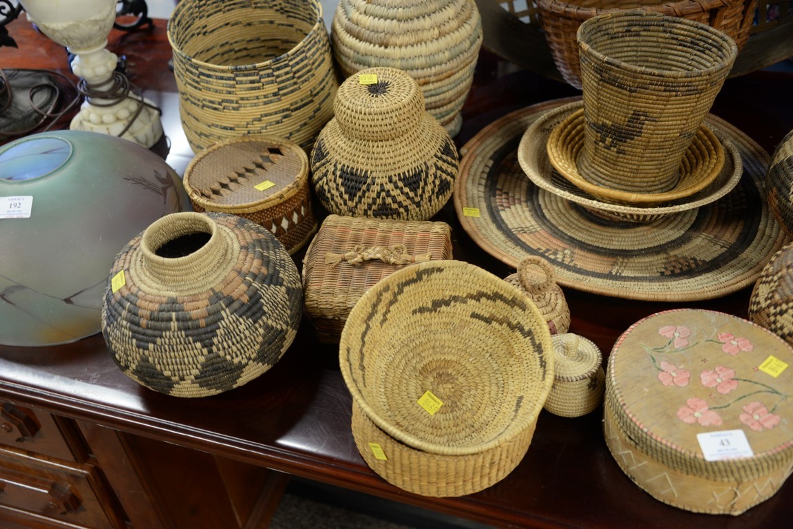 Lot 43: Twenty-five piece lot of various baskets, mostly late 20th century. largest dia. 29 1/2in. Provenance: Estate of Arthur C. Pinto, MD