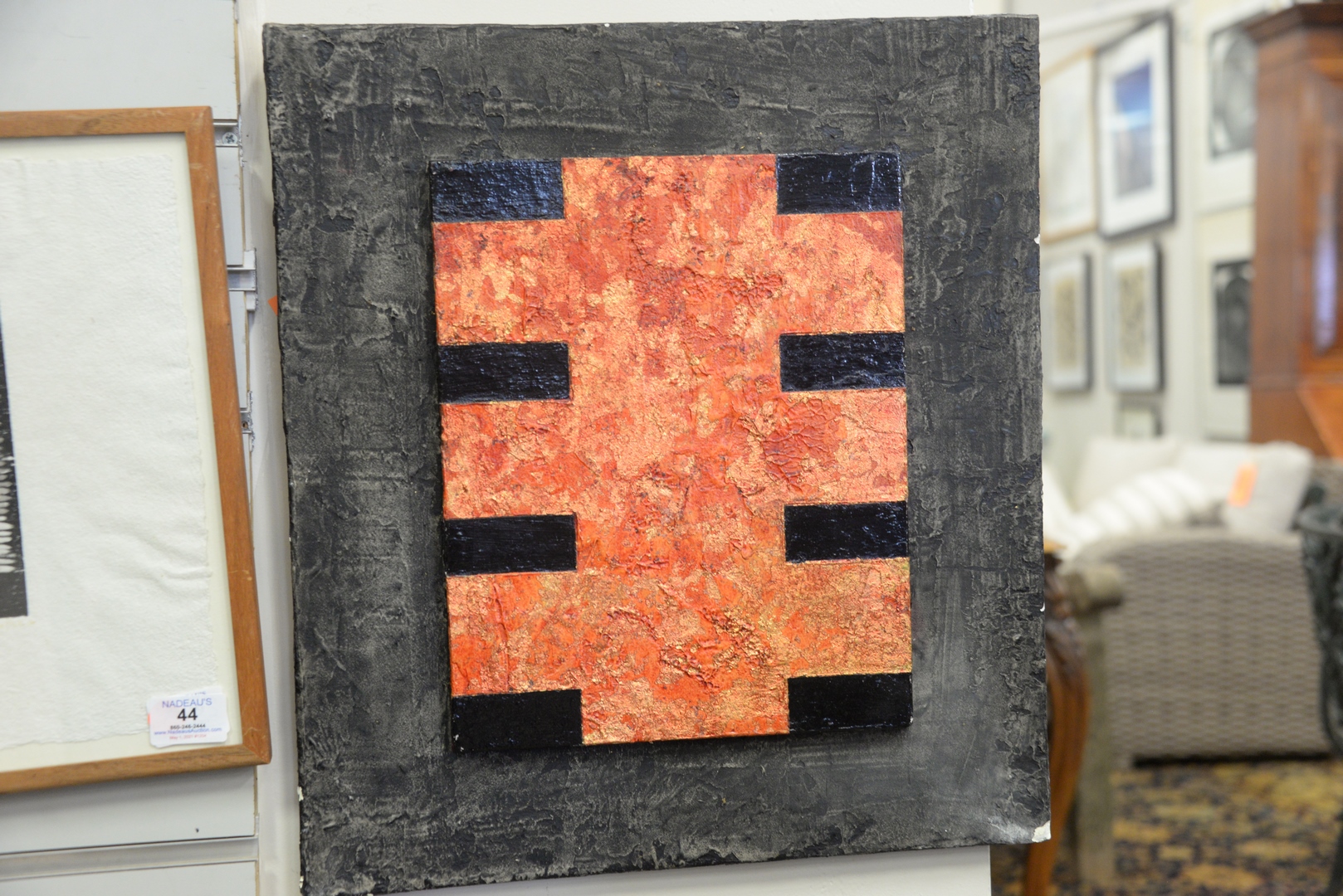 Lot 43: Two Gordon Hart (American, b. 1940) Dragon Series, 1982, gesso, oil, gold and copper leaf and enamel on wood; signed, titled, and dated on the reverse, 18 1/4″ x 16 1/2″; along with Gordon Hart (American, b. 1940), Dragon Series, 1982, gesso, oil, go