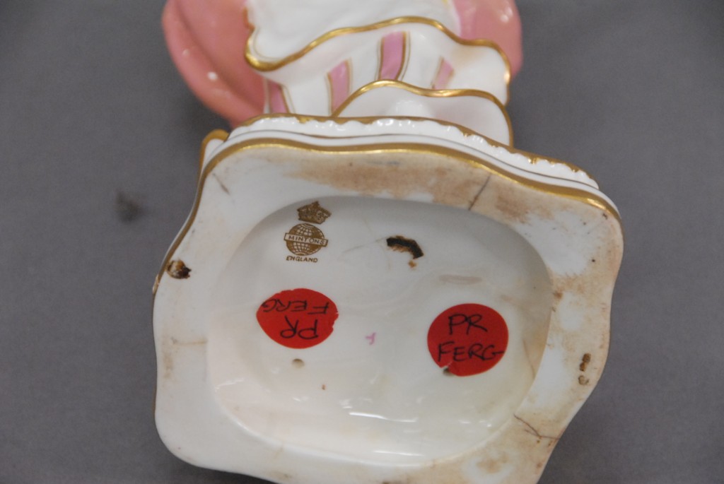 Two piece lot Royal Vienna vase with gilt ram head handles chip on base along with Minton figure two hairline cracks in base.