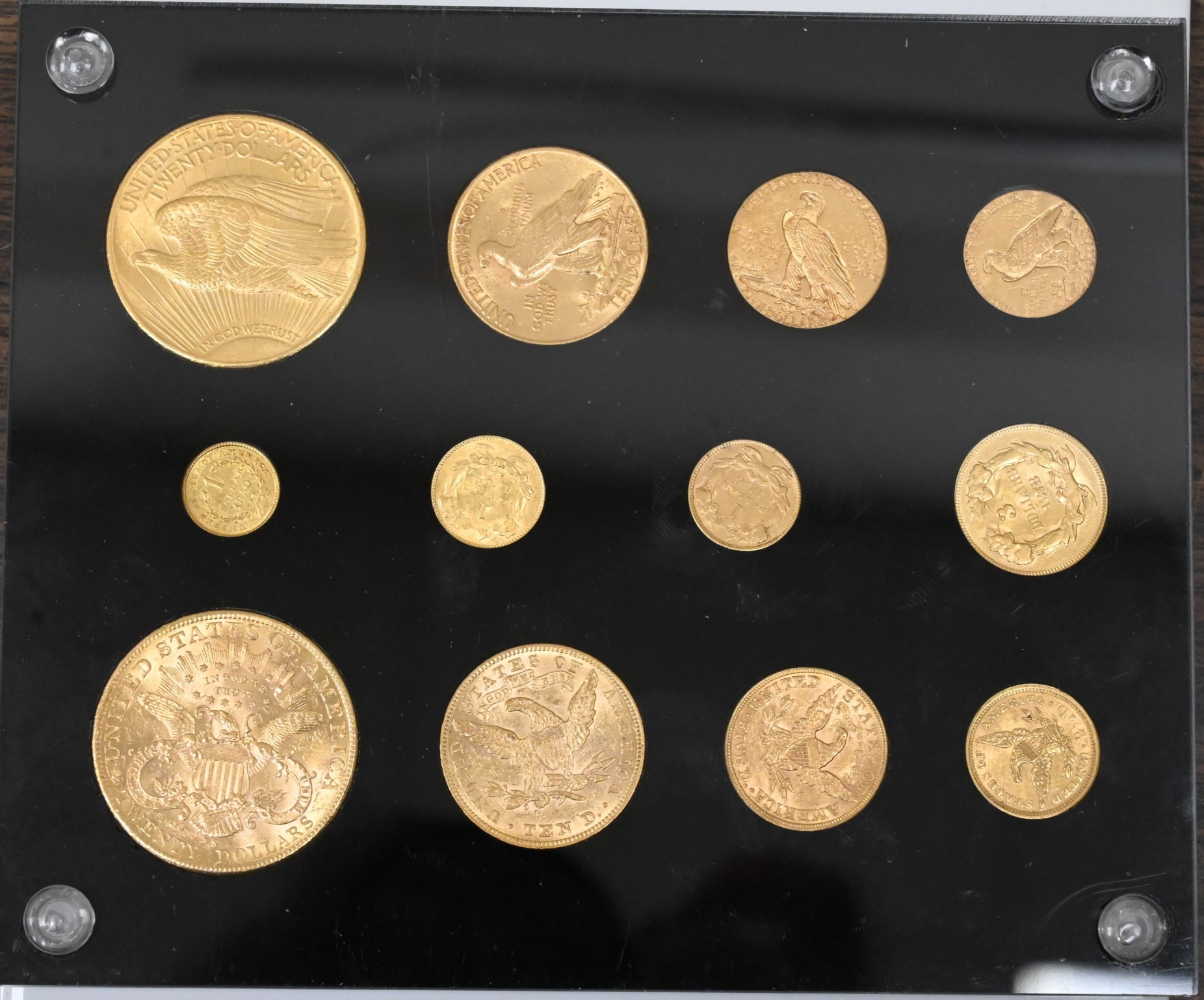 U.S. Gold Type Set 12 Coins in AU TO UNC, with $20 Liberty, $20 Saint Gaudens, $10 Liberty, $10 Indian, $5 Liberty, $5 Indian, $3 Princess, $2.50 Liberty, $2.50 Indian and three $1 dollars of each type.
