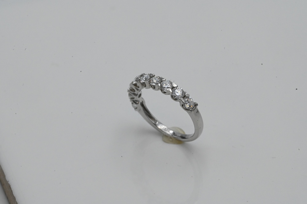 Lot 43: Vivid Company 18 Karat White Gold Band, set with nine diamonds totaling one carat, size 6 1/2.