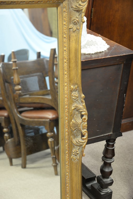 Walnut server and large mirror. server top: 221 x 72, mirror: 38 x 48