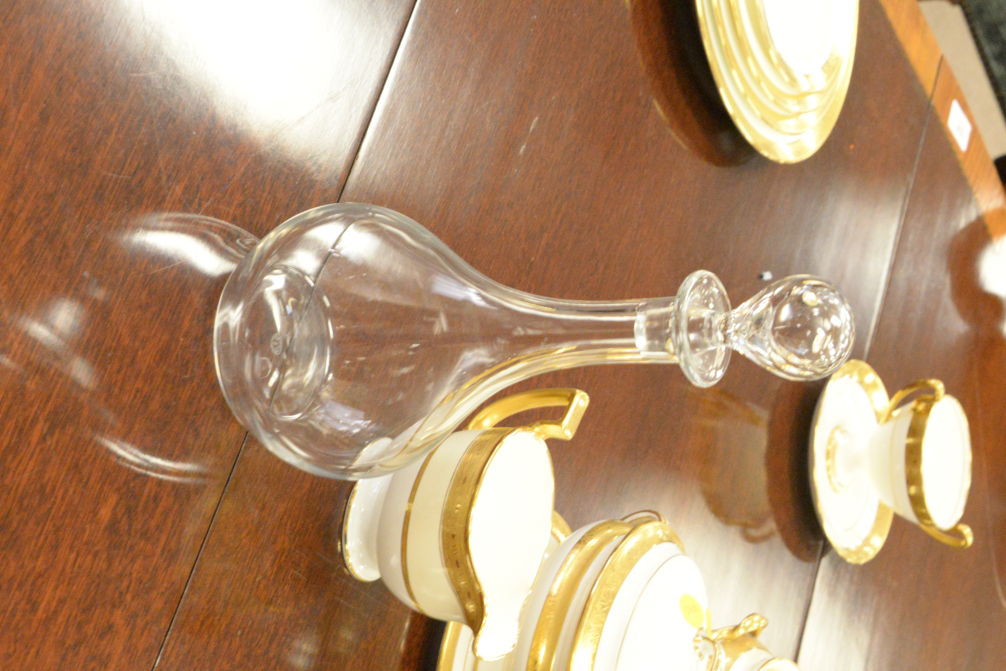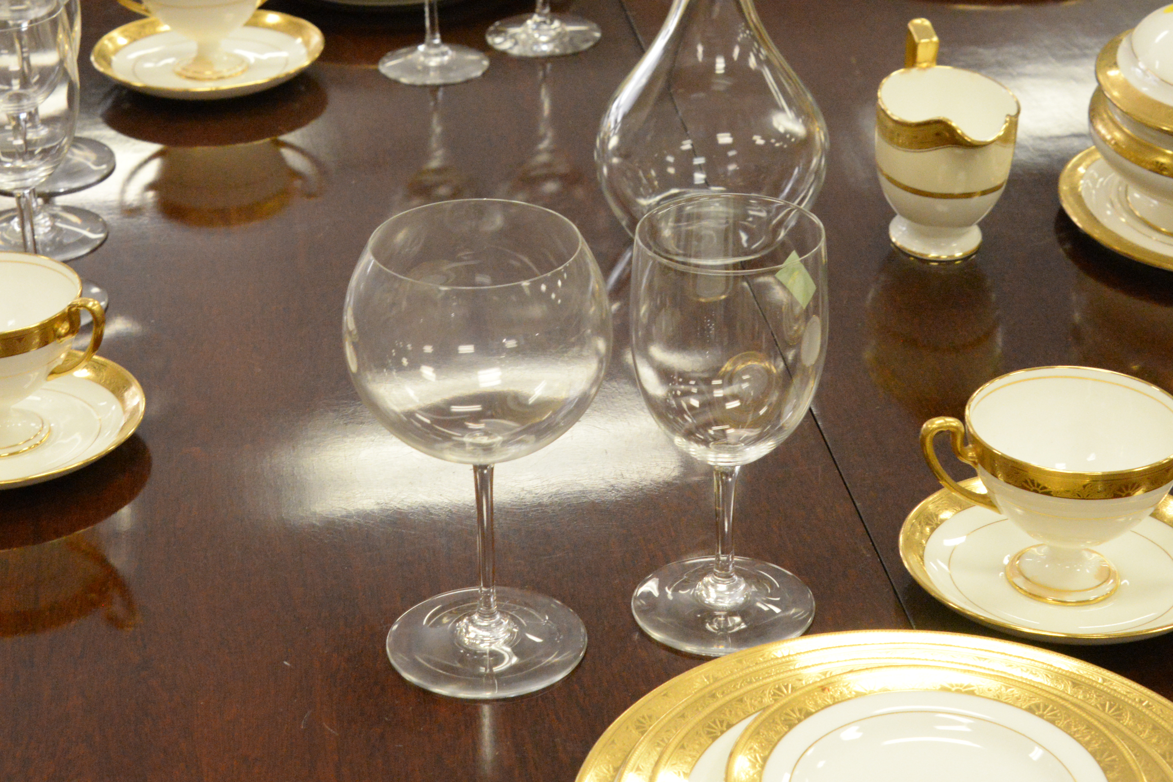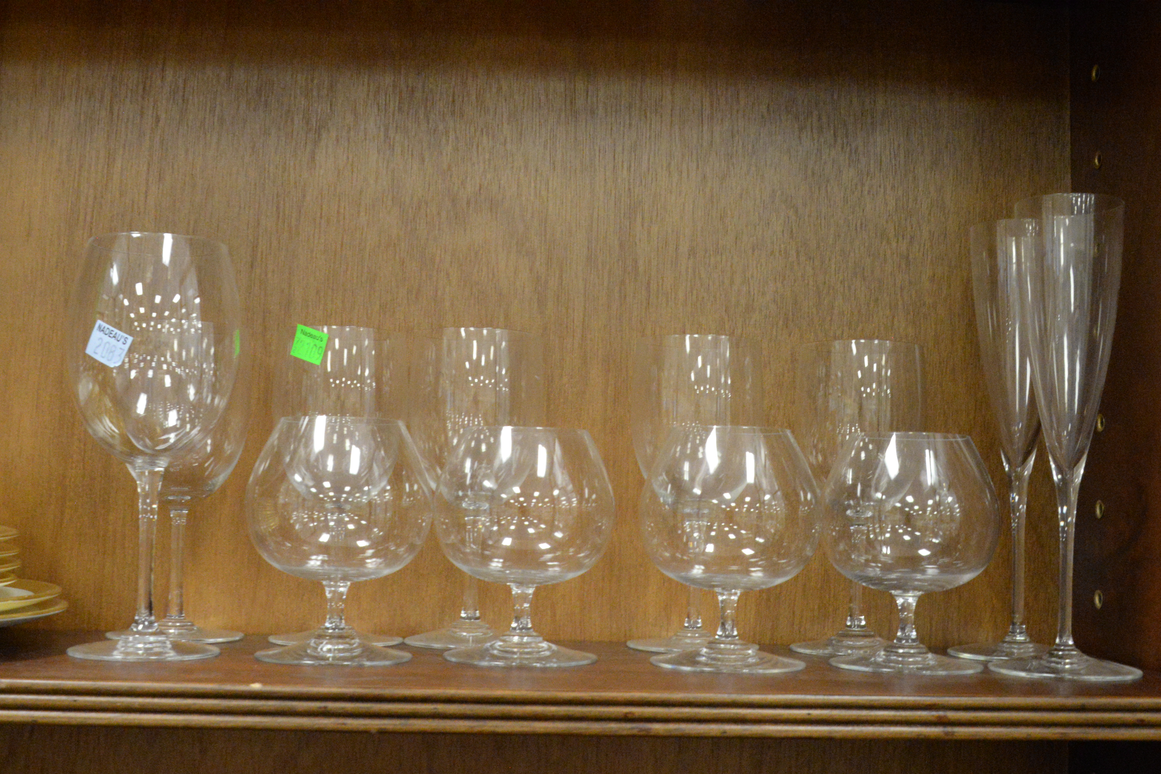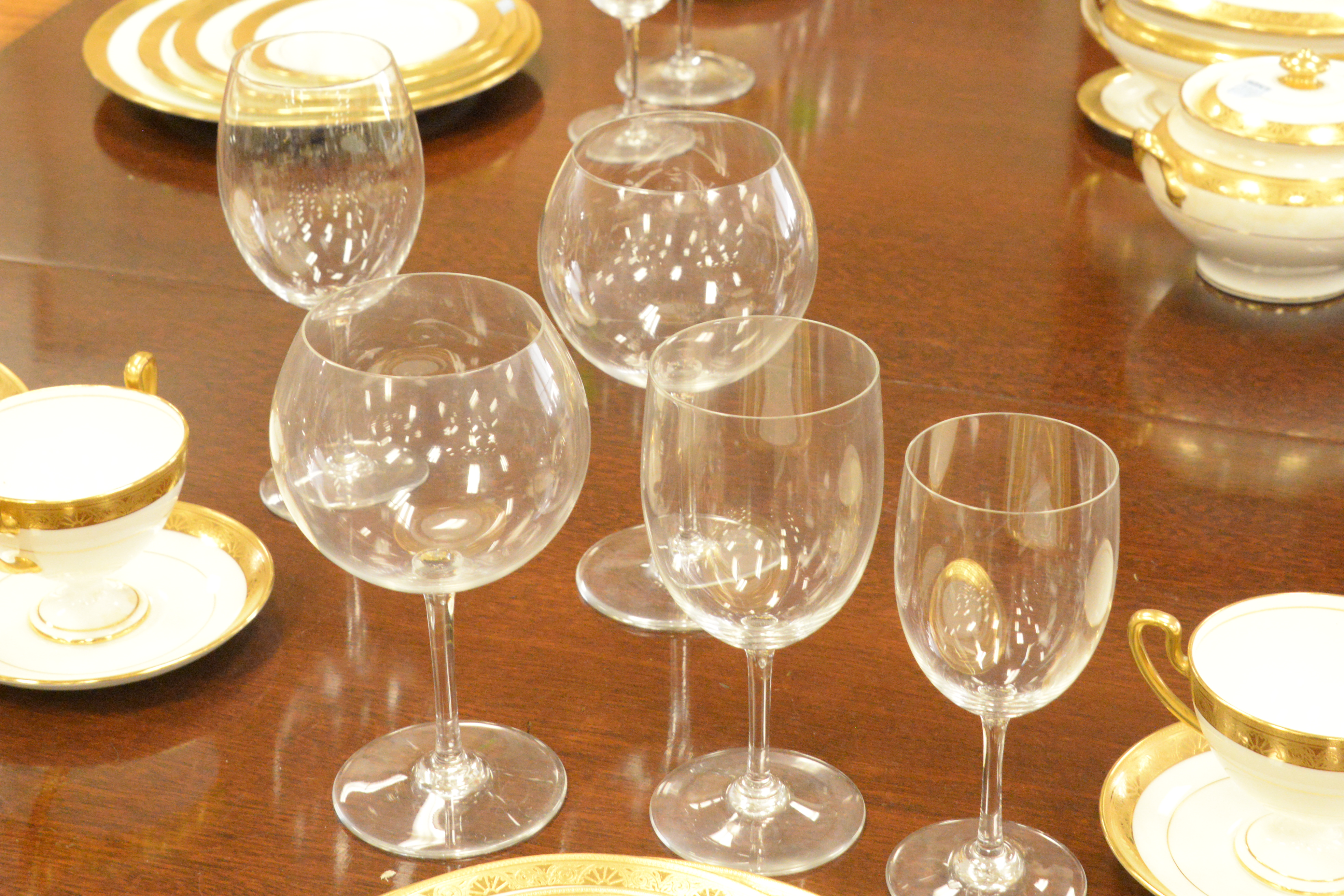 31 Baccarat Stems to Include, four red wine, four brandy, two champagne, four white wine, five large water goblets, 11 small water goblets, decanter