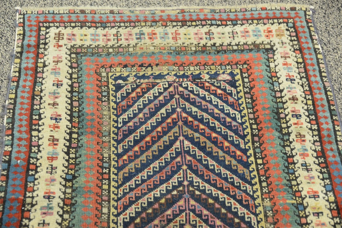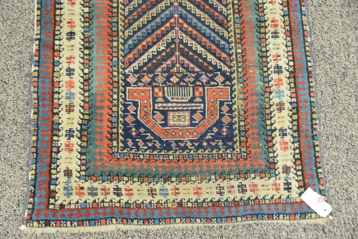 Caucasian Oriental prayer rug, late 19th century some wear. 2’4 x 4’3