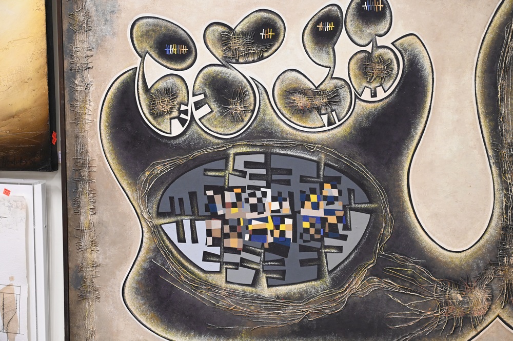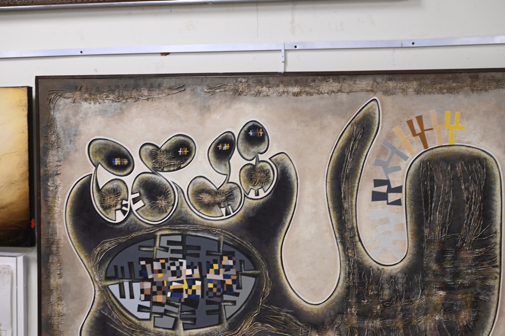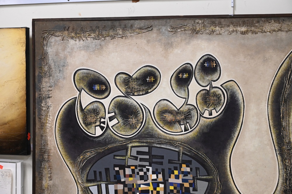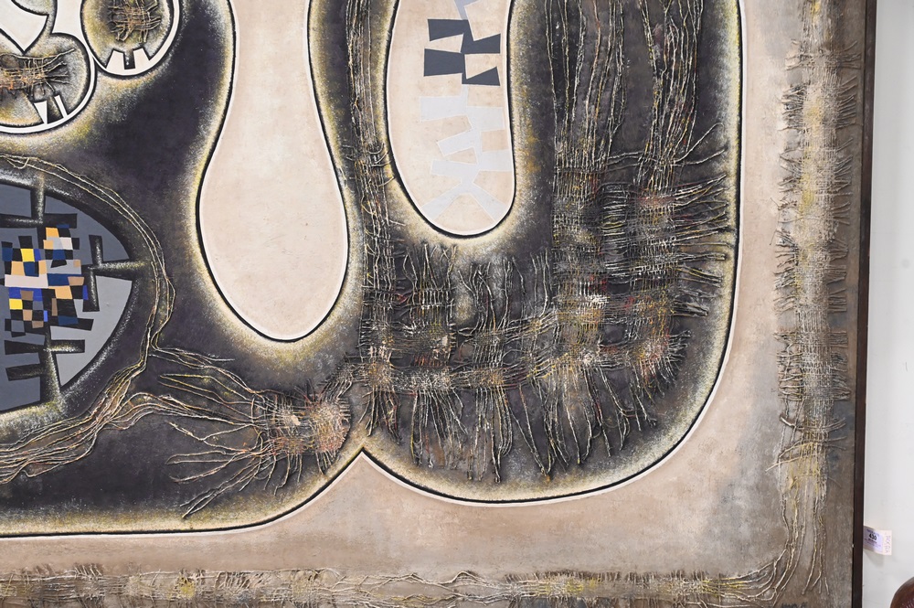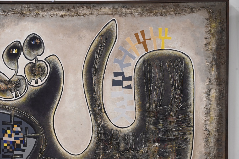 Lot 430: George Henry Johnson (b. 1926), “Life a Journey” 1966, mixed media, signed lower right Johnson, 48″ x 72″.