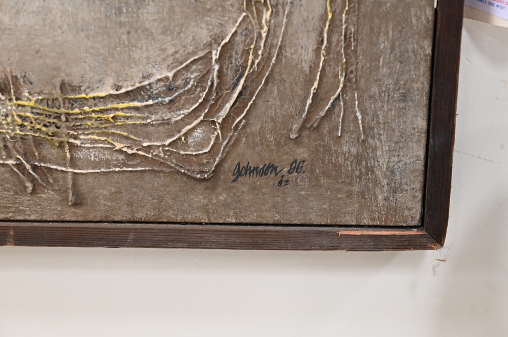 George Henry Johnson (b. 1926), “Life a Journey” 1966, mixed media, signed lower right Johnson, 48″ x 72″.