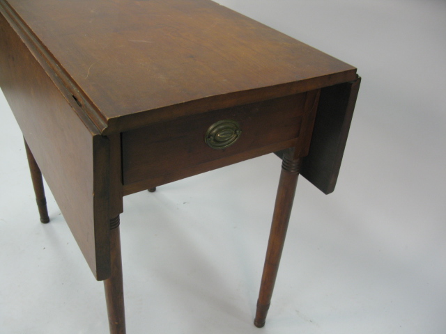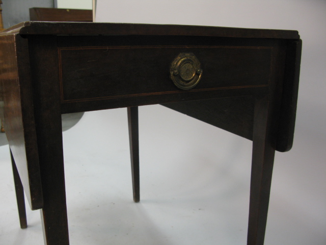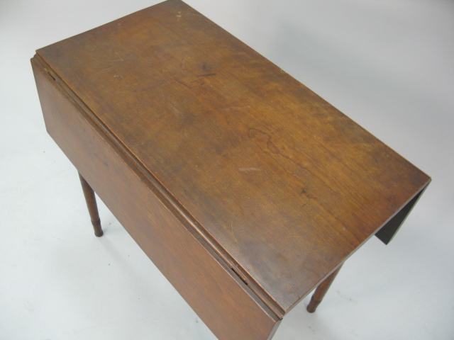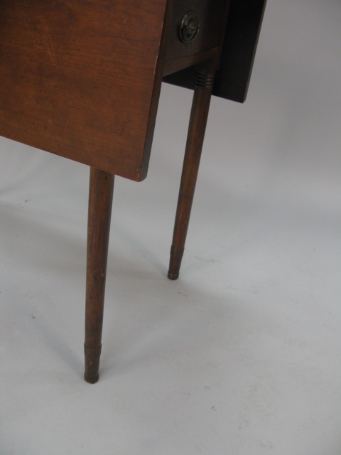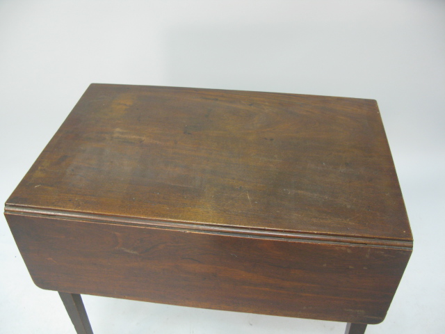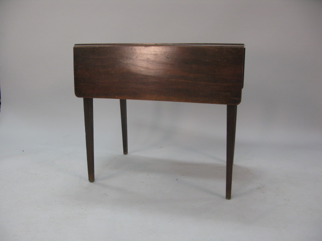 George IV mahogany drop leaf table with false drawers on square tapered legs.