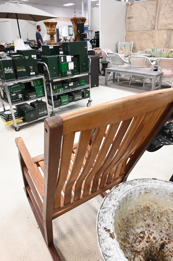 Teak Rocking Chair, height 45 inches, width 25 inches.