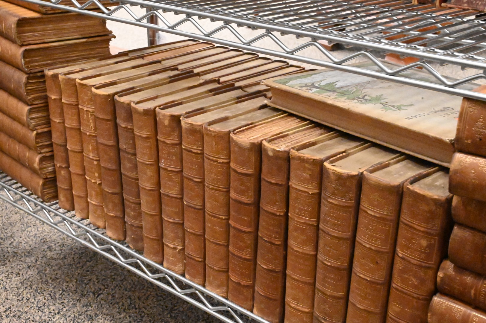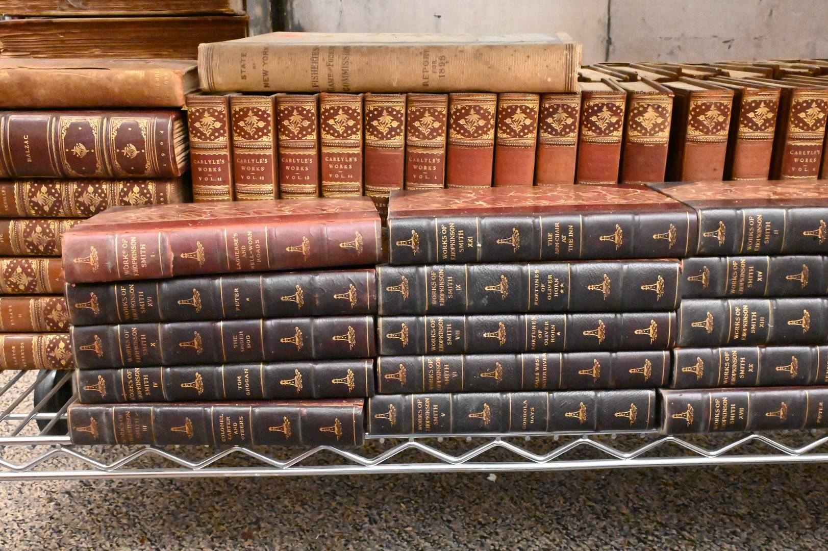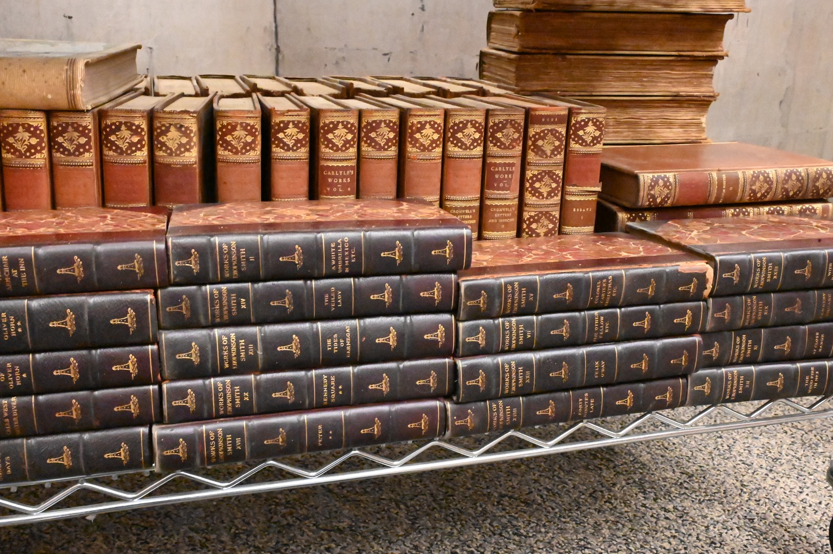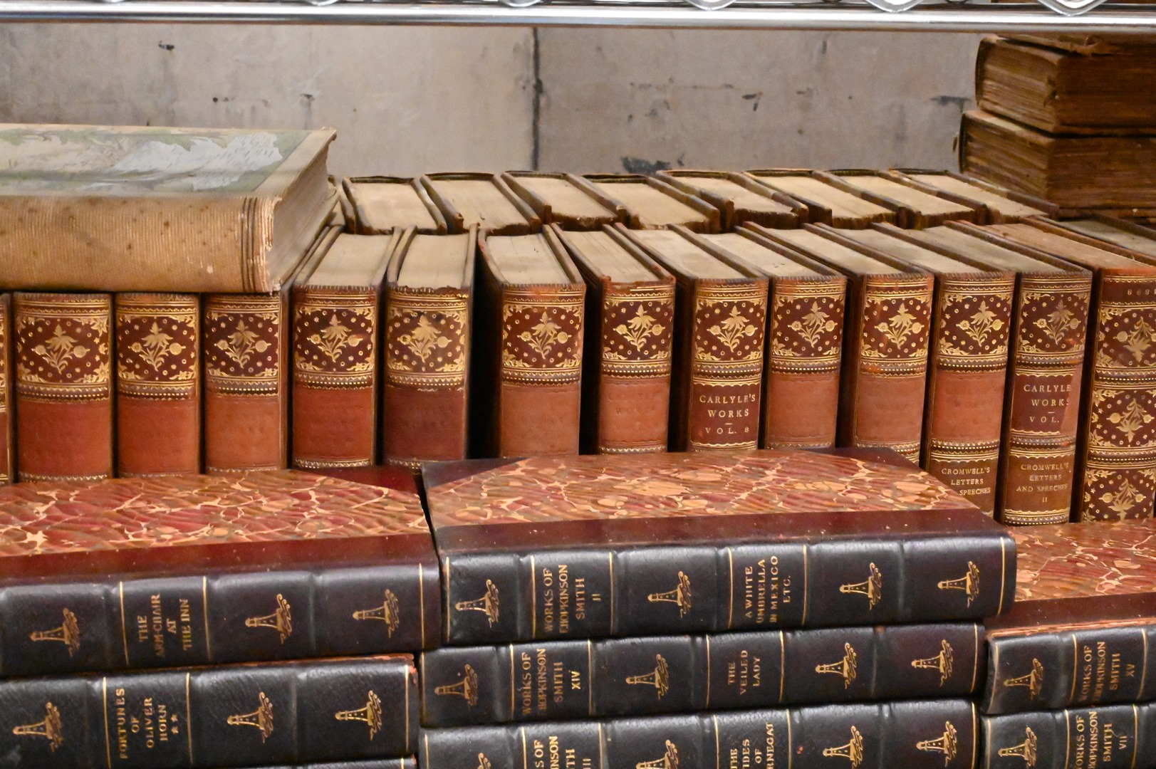 Three Sets of Leather Bound Books, to include 1896 limited edition of Carlyle’s works, ____ volumes, limited edition “The Works of Oliver Wendell Holmes”, published in ____, along with ____ volumes of “The Novels of Charles Lever”, published in 1898, Provenance: Estate of Cyril H. Moore Jr, Kent, Connecticut.