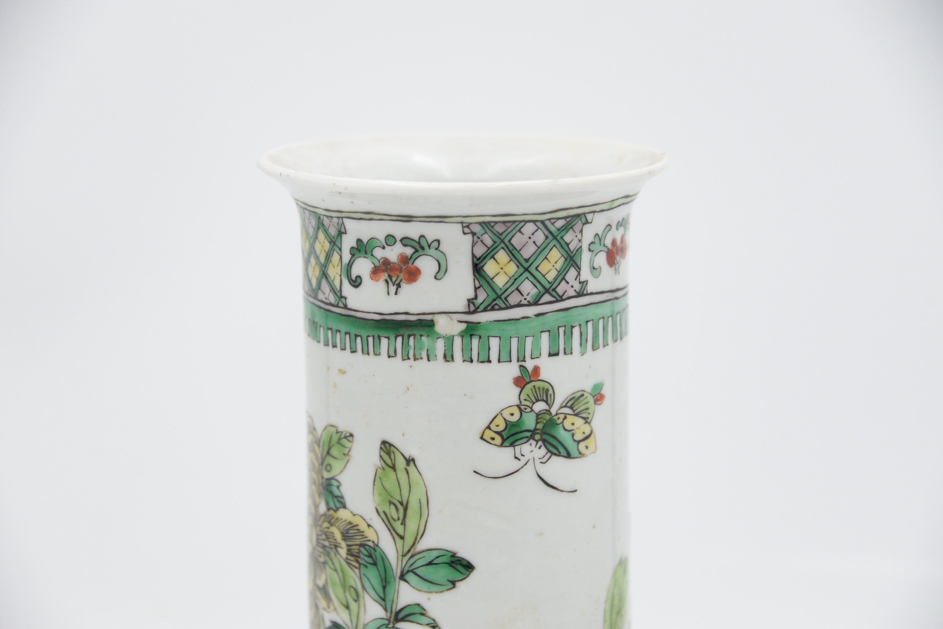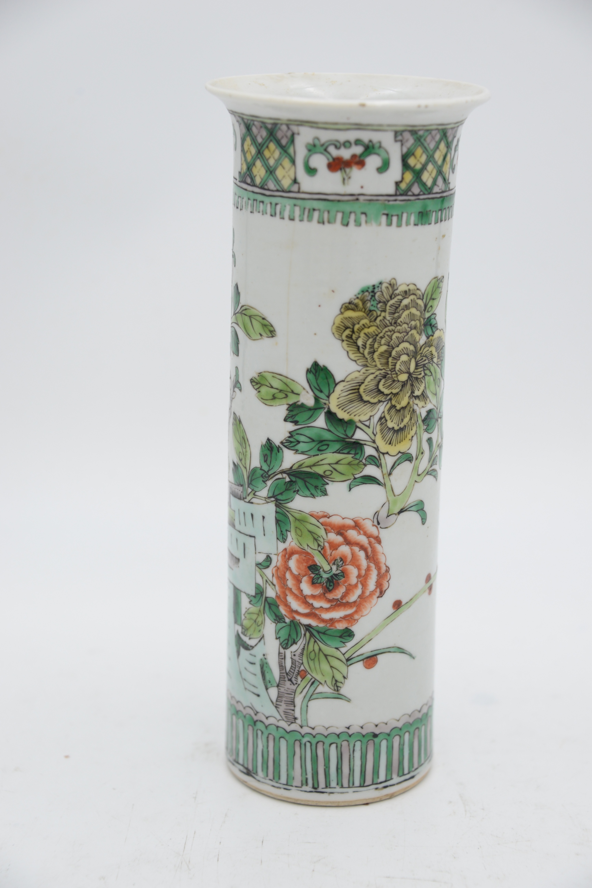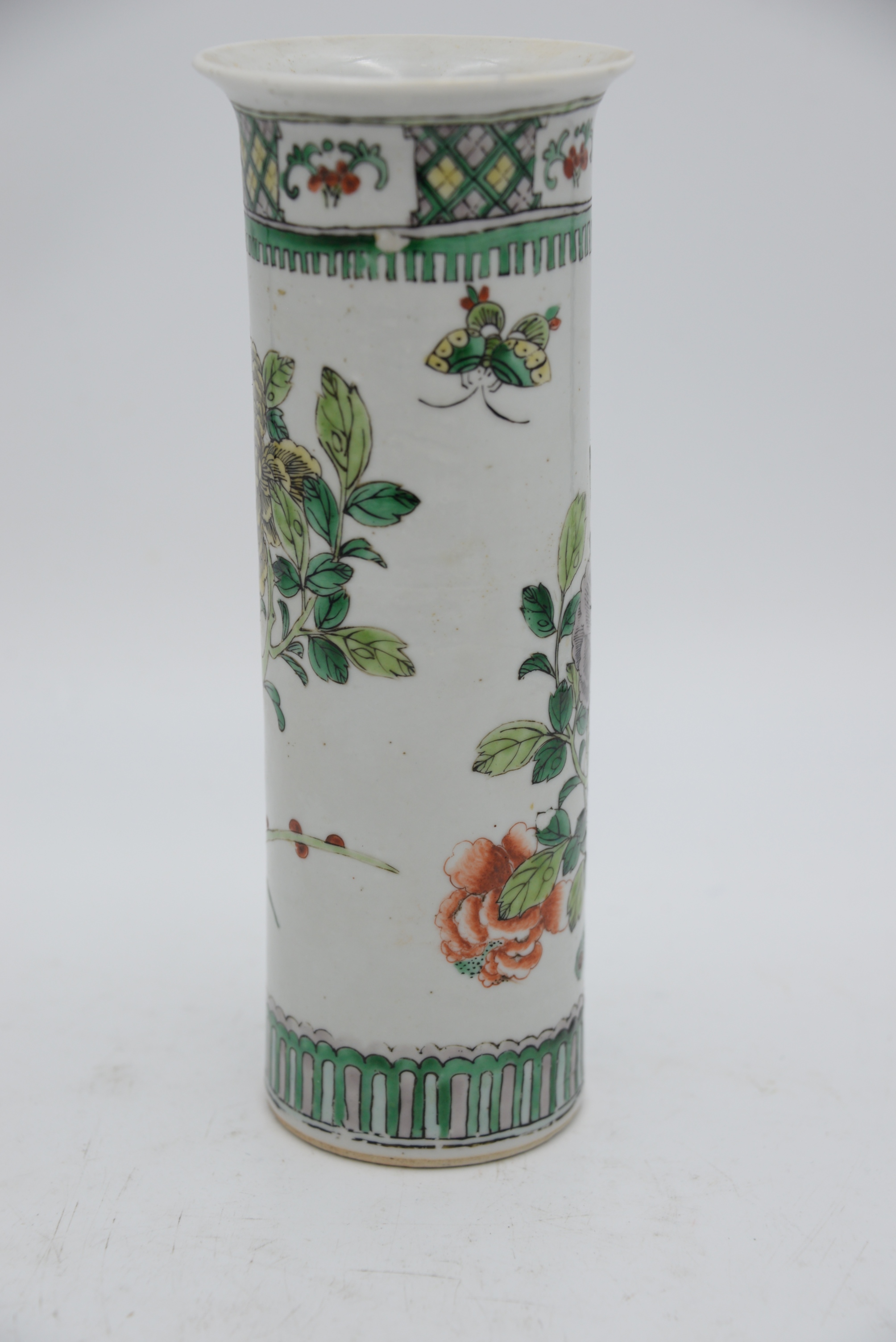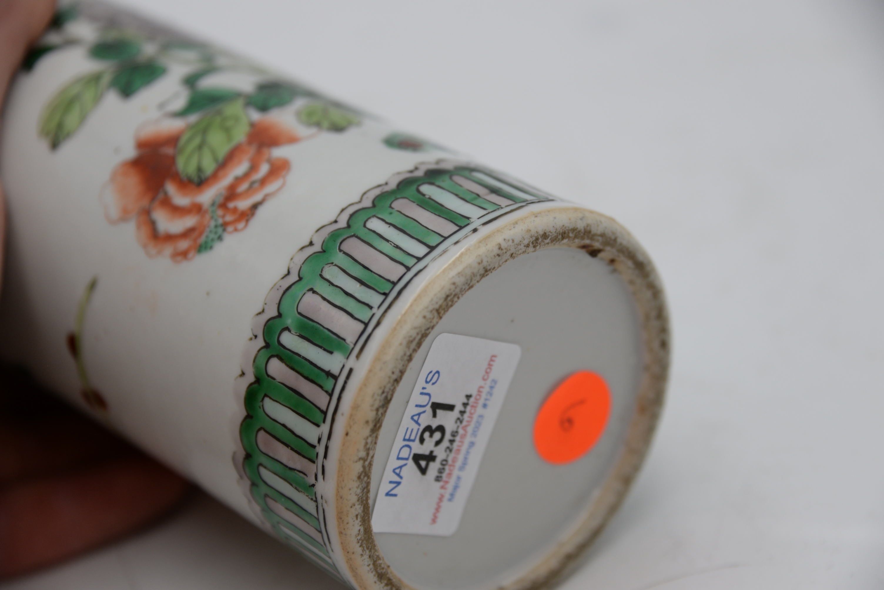 Lot 431: Chinese Famille Verte Cylindrical Vase