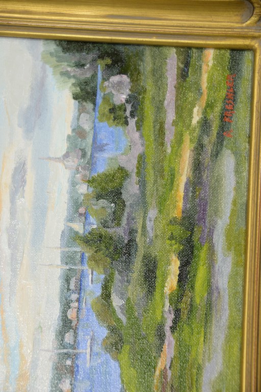 R. Freshler contemporary oil on canvas spring river’s edge. 12 x 16