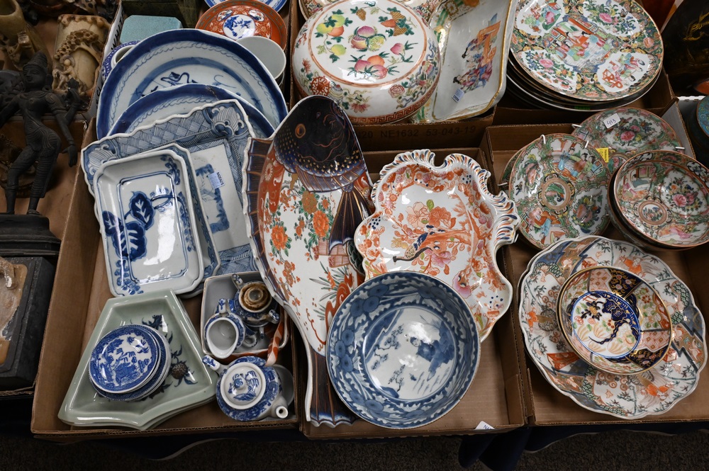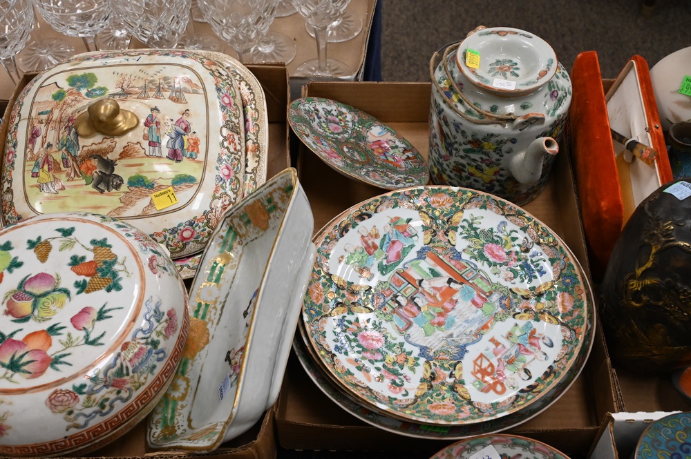 Lot 431: Six Tray Lots, to include chinese porcelain, rose medallion plates, blue and white plates, Famille Rose covered box, etc.