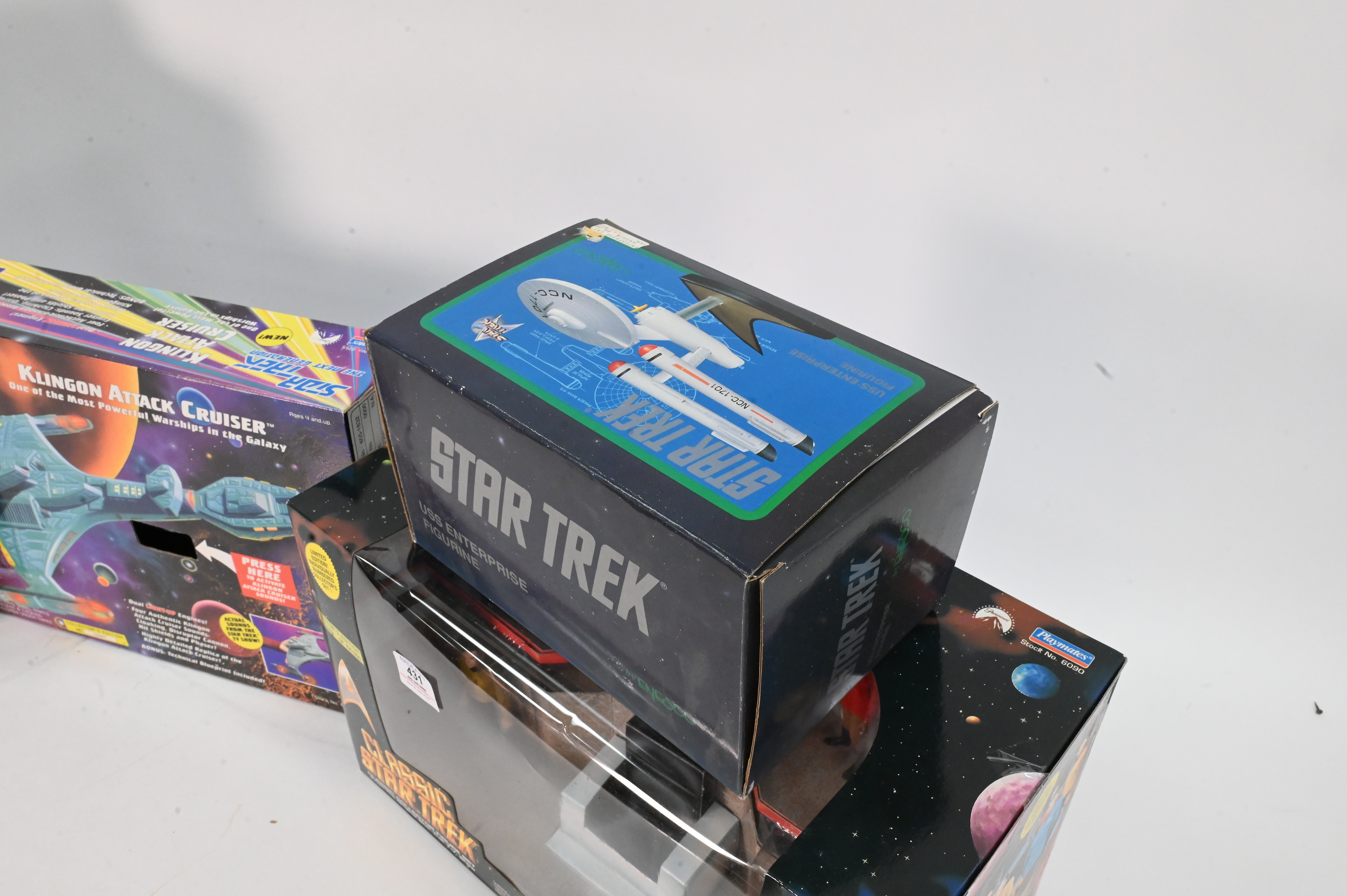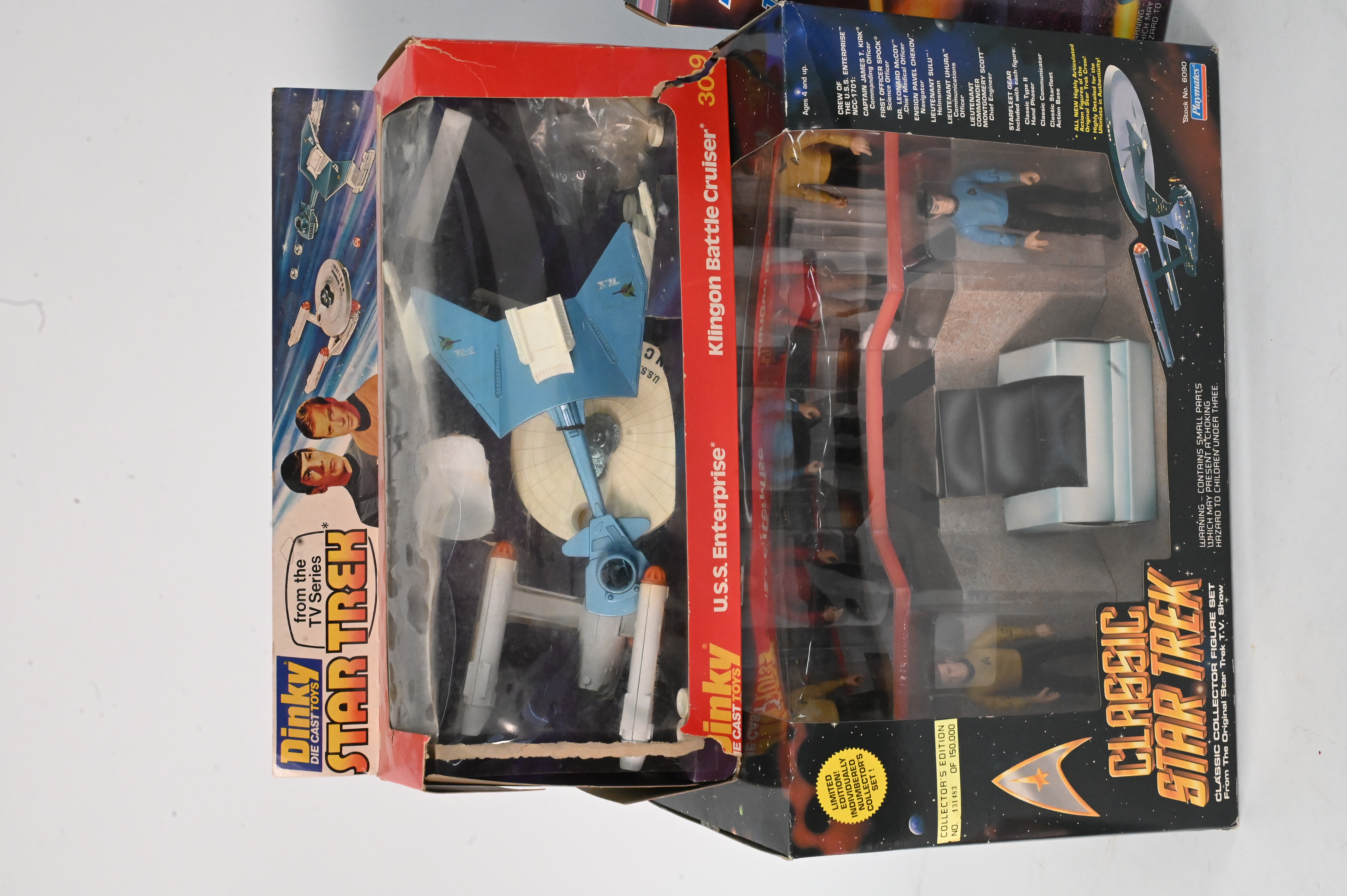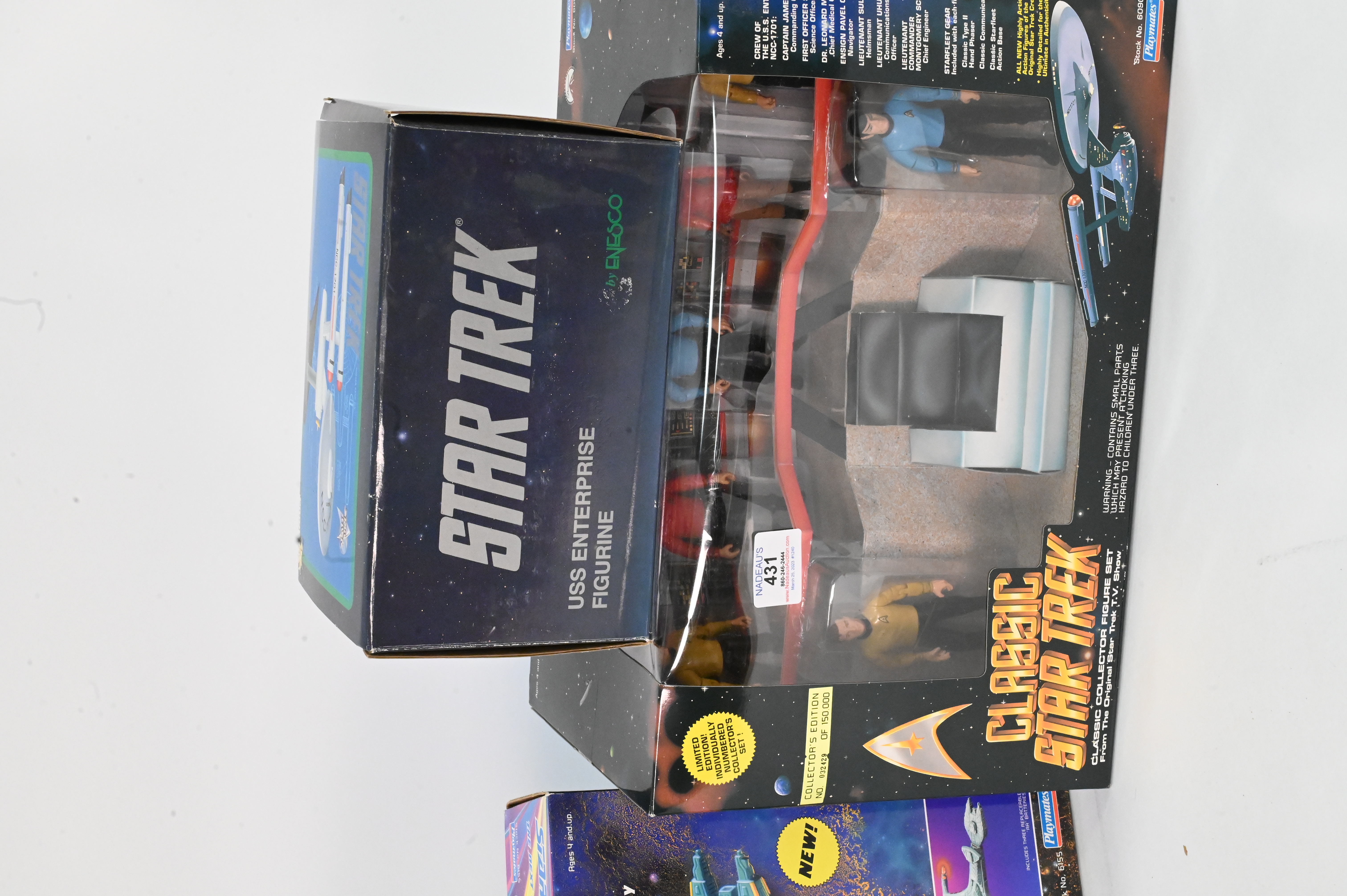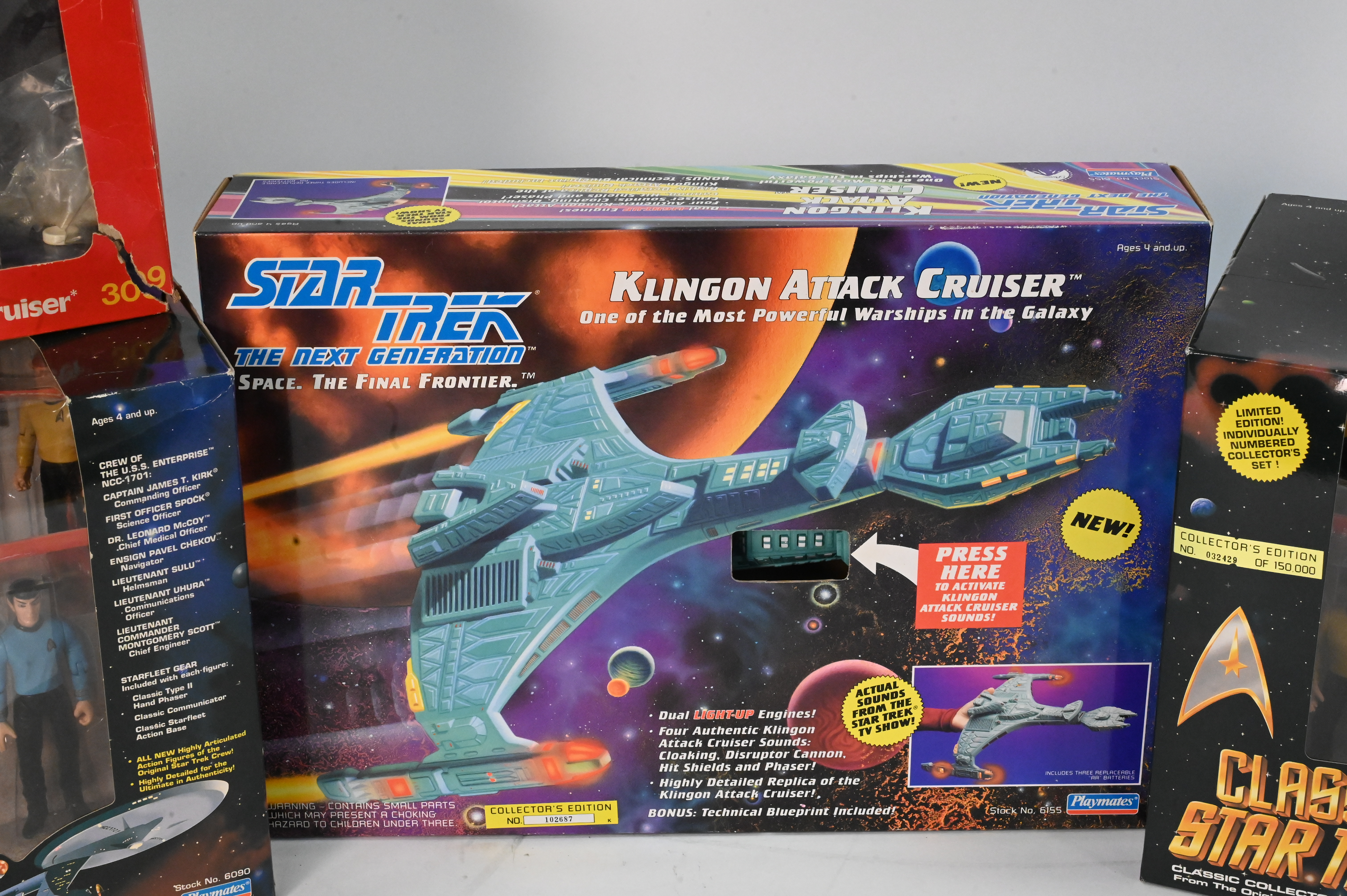 Star Trek Memorabilia Grouping, to include action figures and toy models in original packaging “Klingon Attack Cruiser”, “USS Enterprise” figurine, along with classic collector figures.