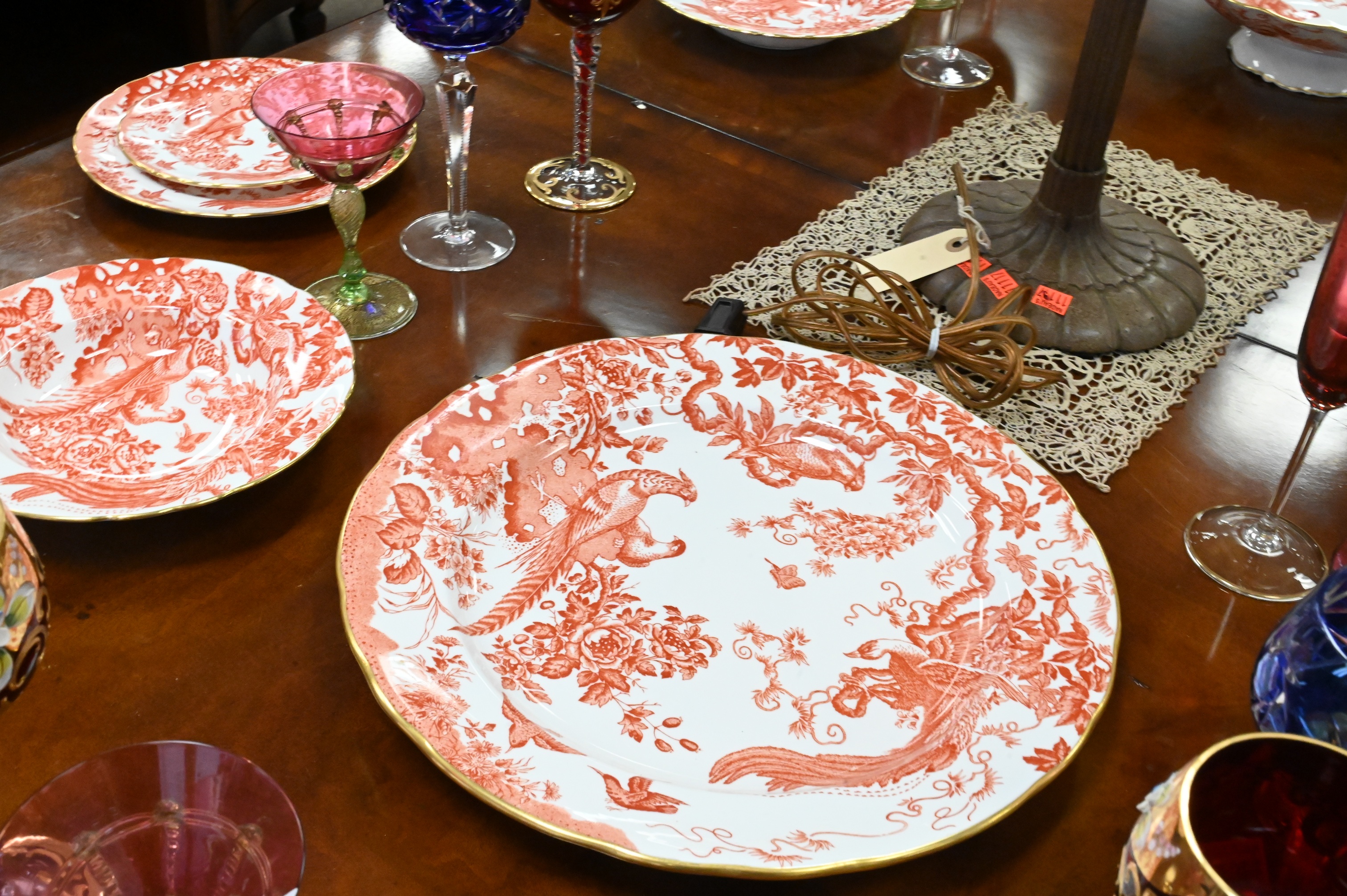 Lot 432: 28 Piece Royal Crown Derby “Red Aves” Porcelain Service