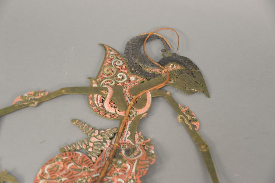Indonesian marionette, polychrome and pierced decorated figure. ht. 28 in.