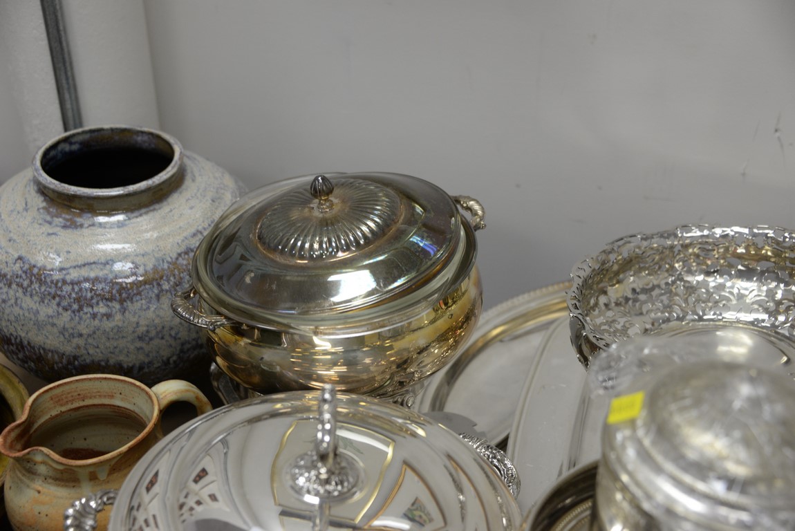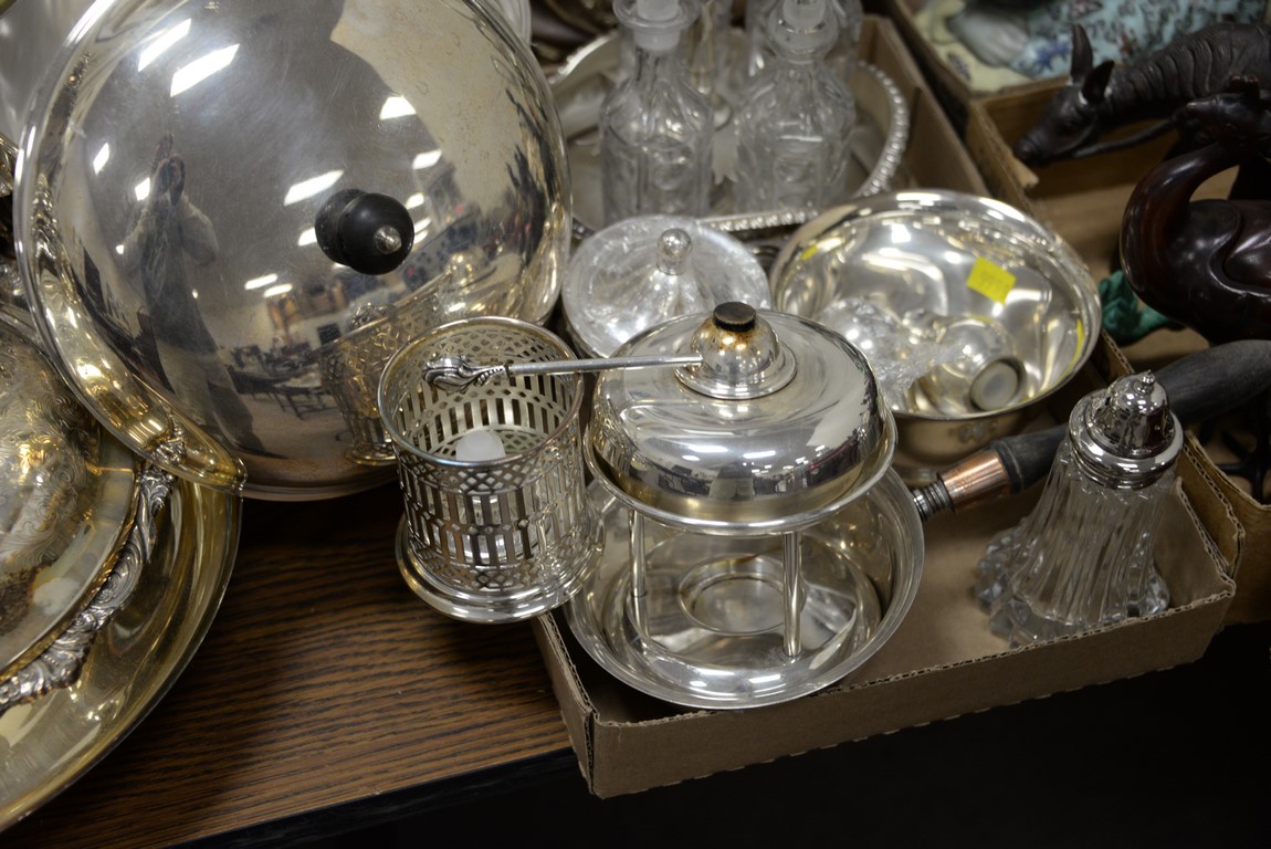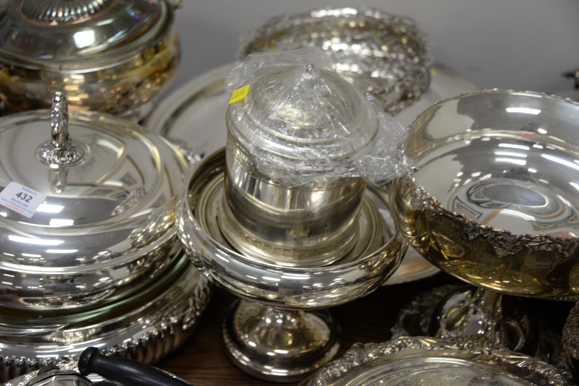 Large lot of silverplated items including trays, compote, serving dishes, etc.