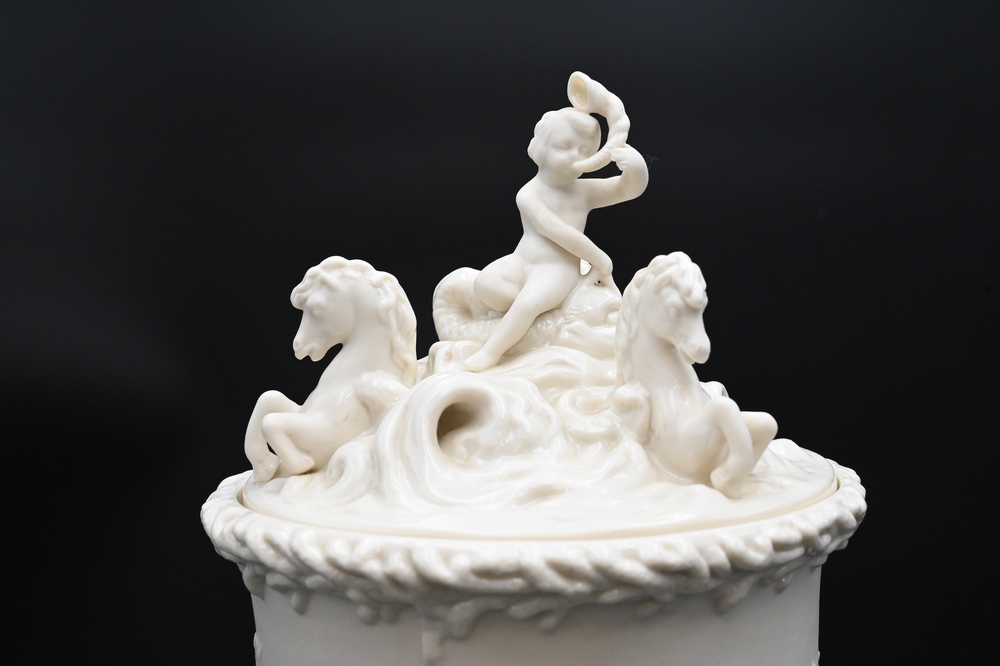 Lot 433: Belleek Covered Porcelain Ice Pail, having Prince of Wales pattern with green mark on bottom, height 18 1/2 inches.