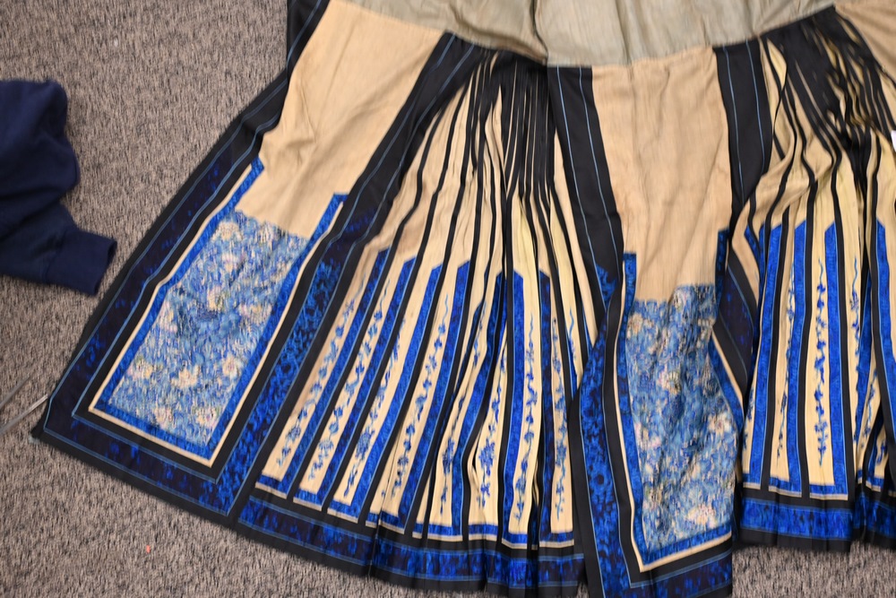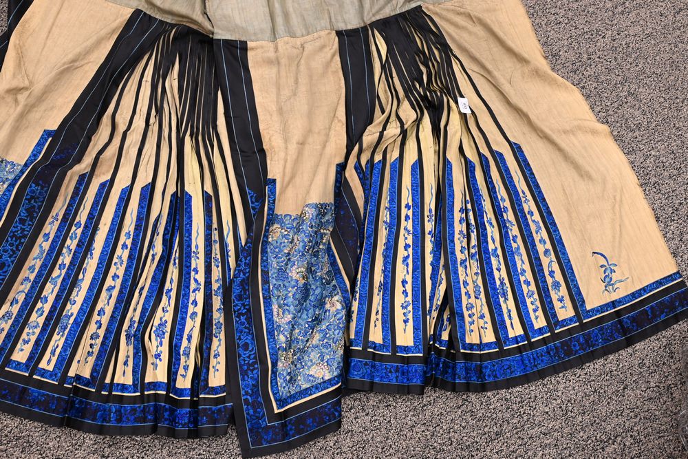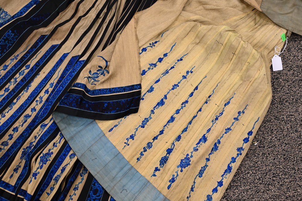 Lot 433: Chinese Silk Embroidered Skirt cream ground with butterflies amid blue flowers length 40 inches