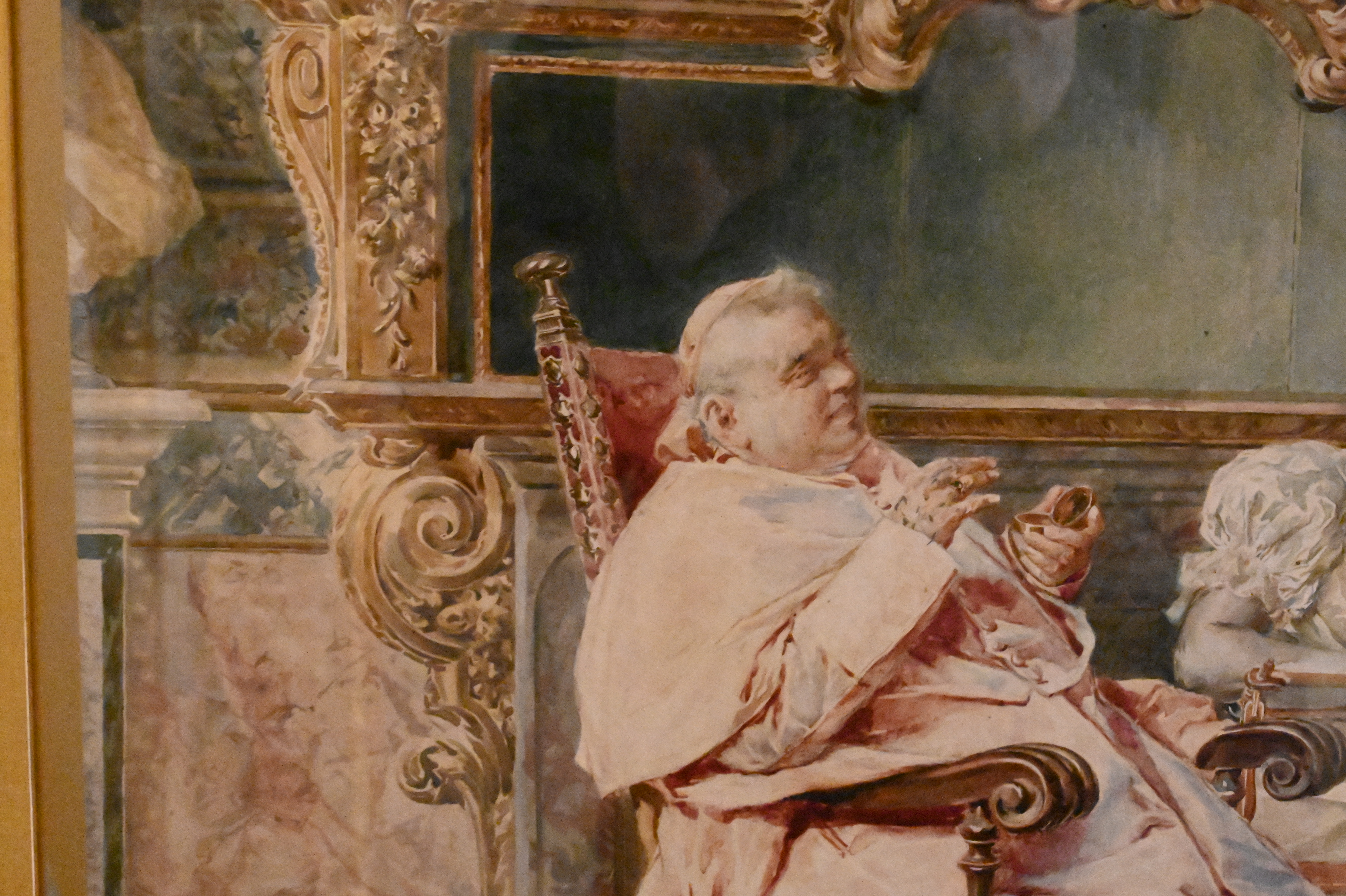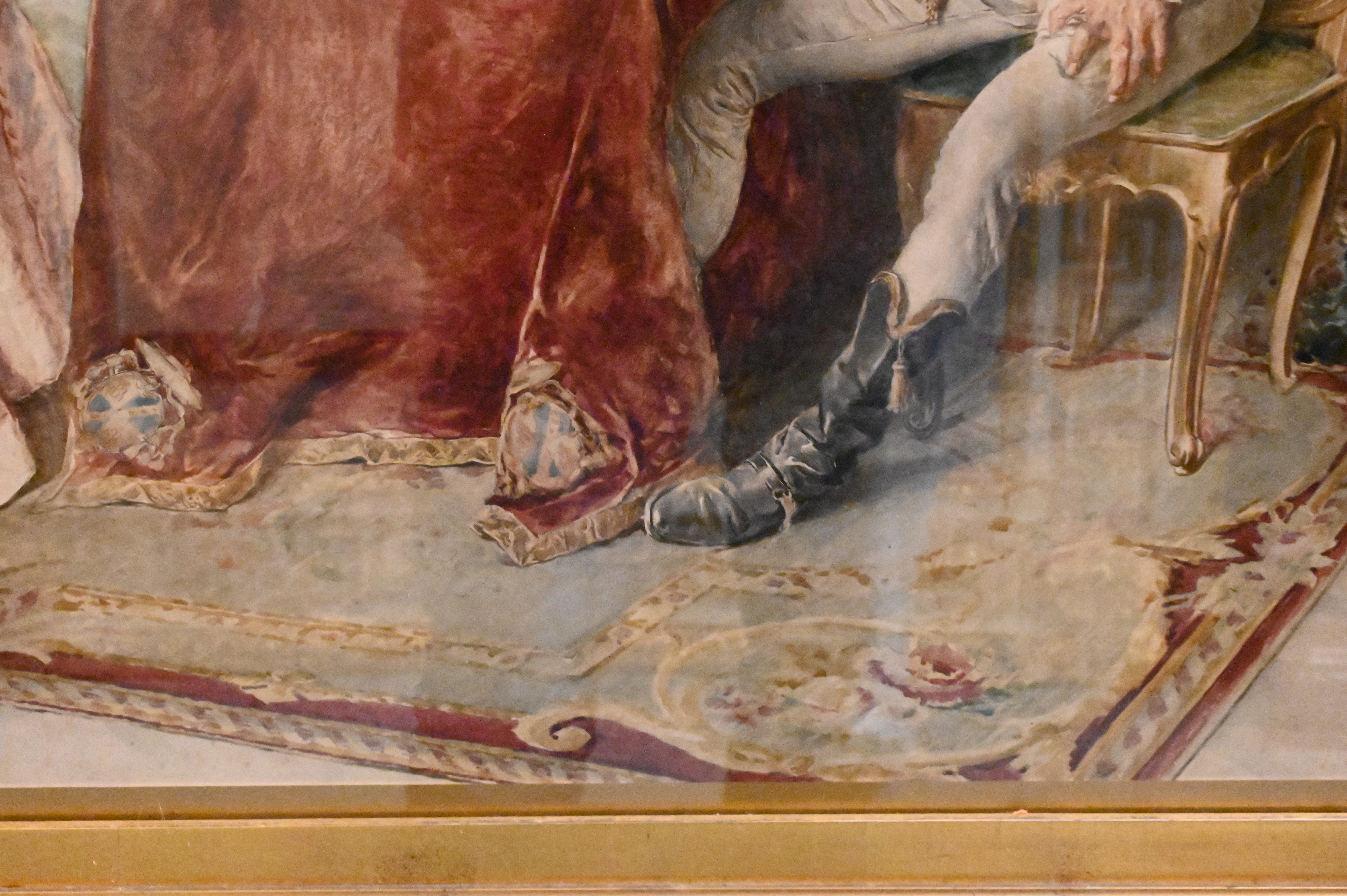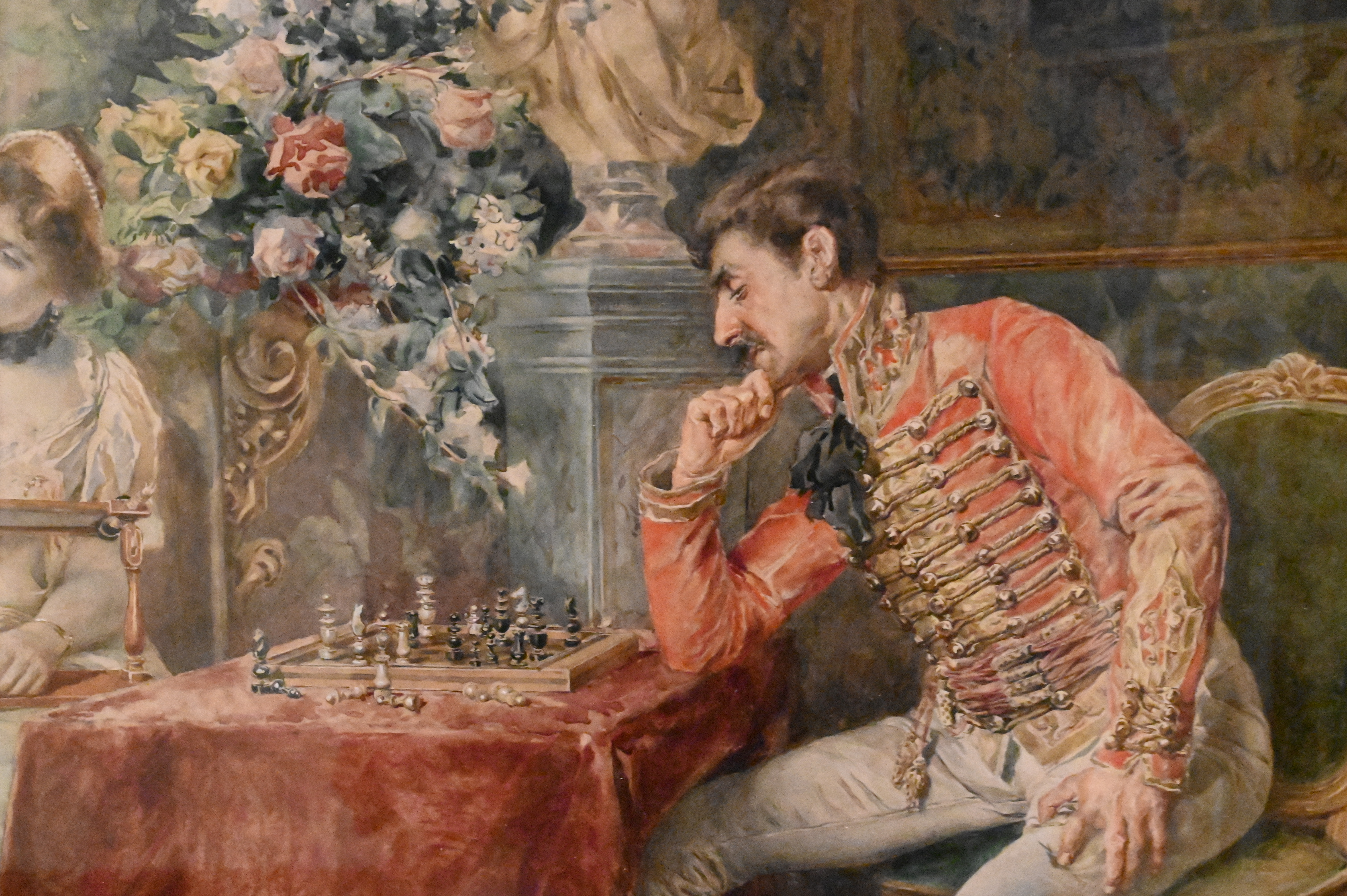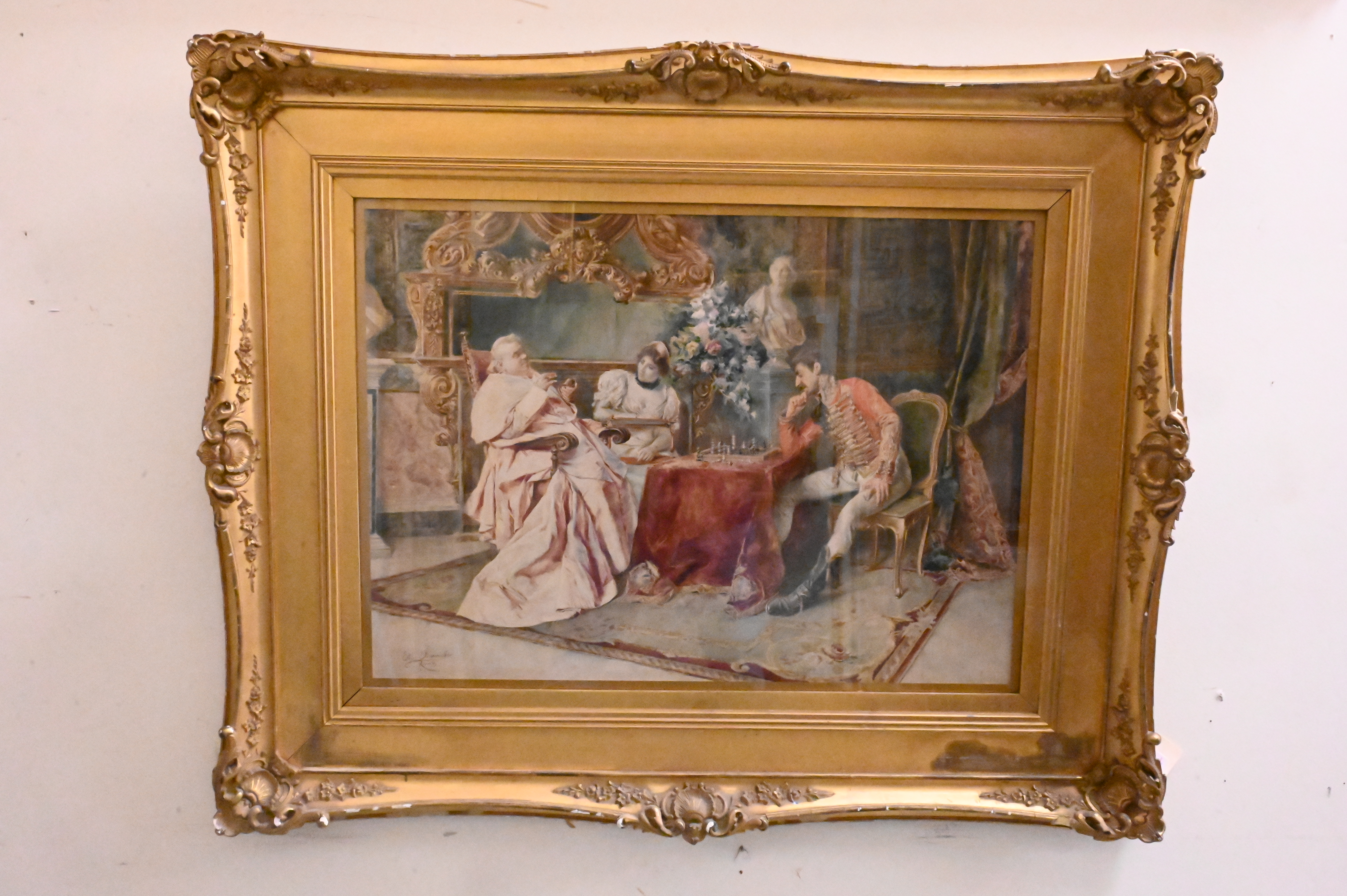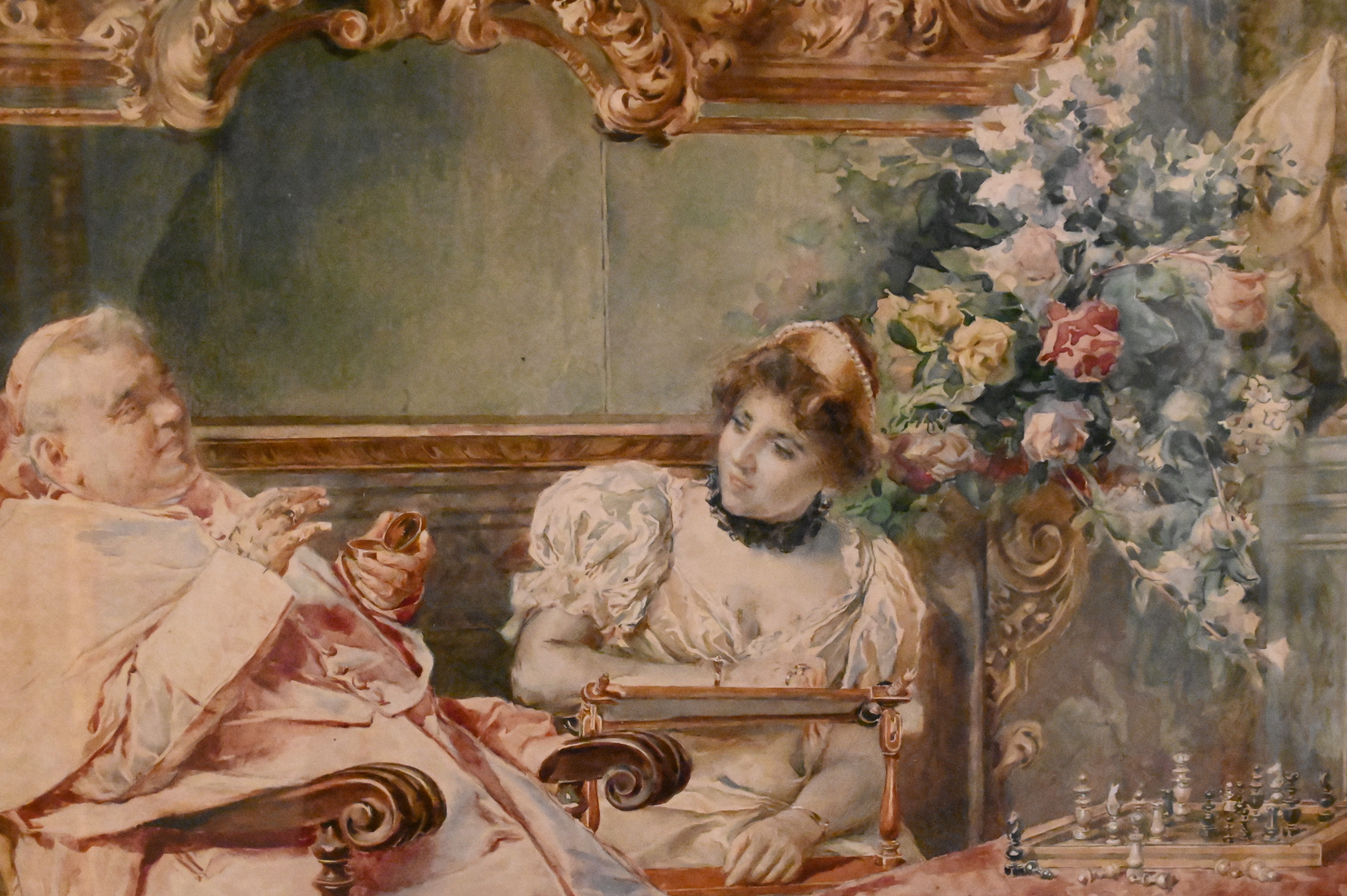 Interior scene of royals playing chess