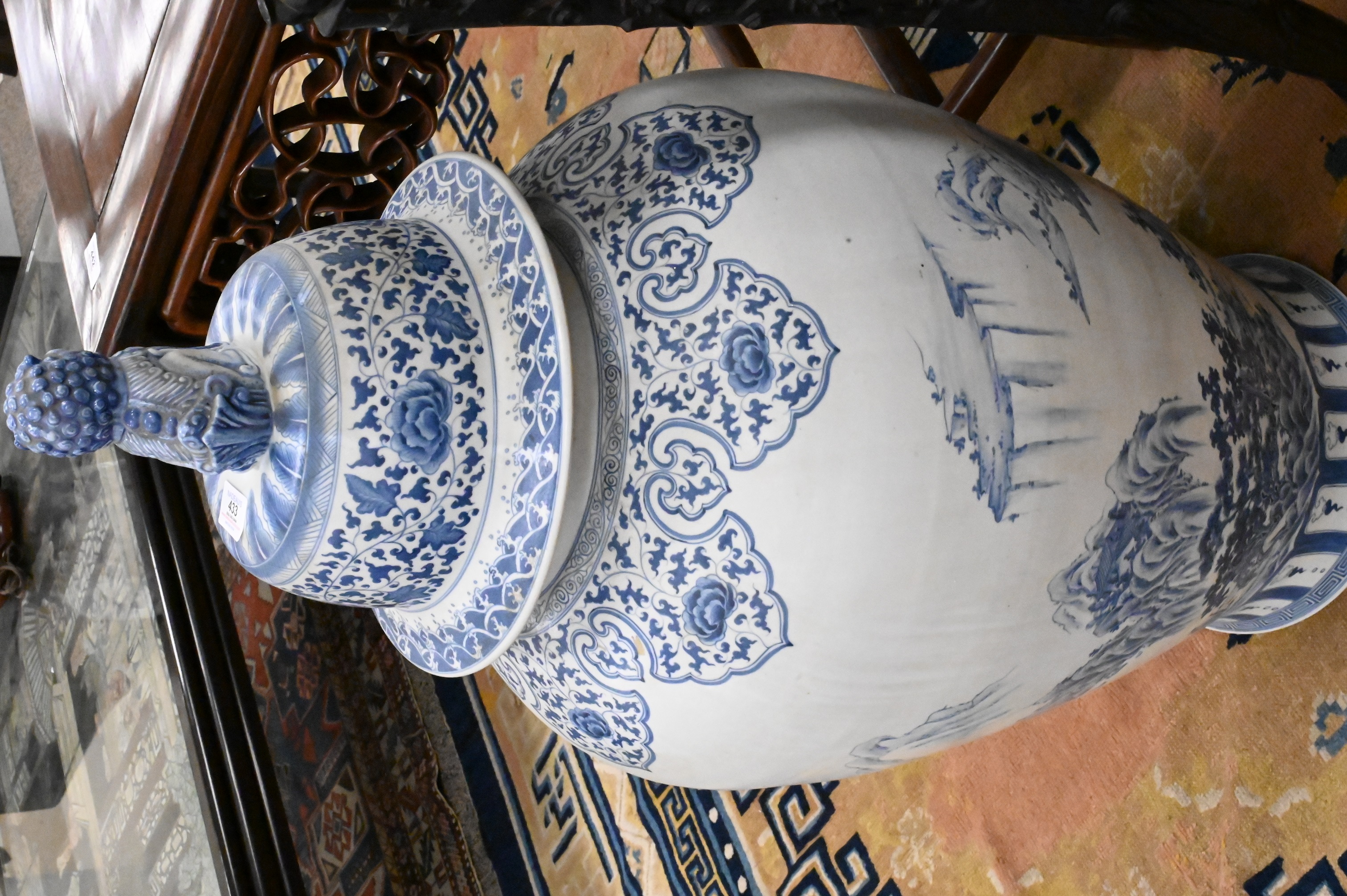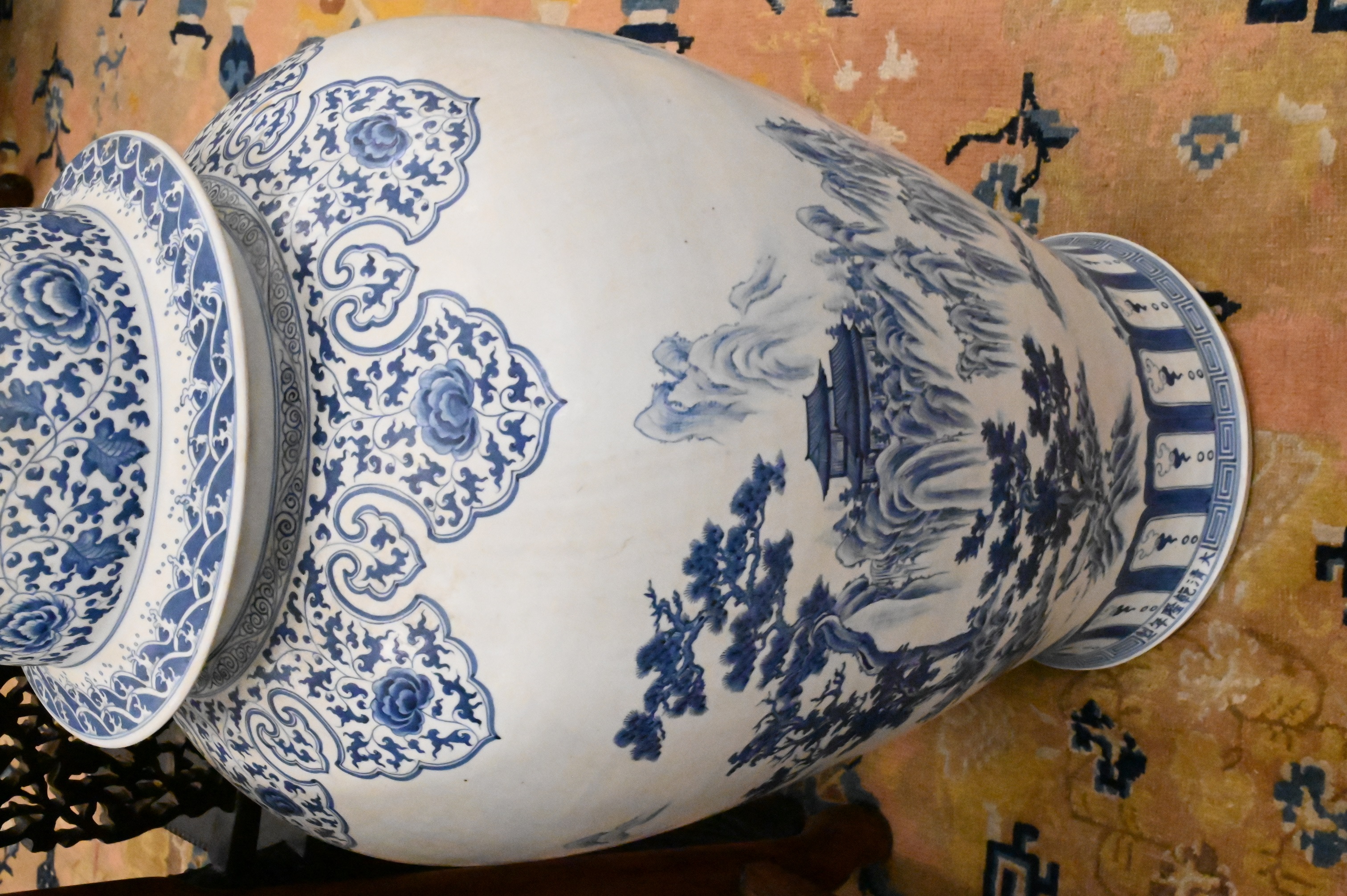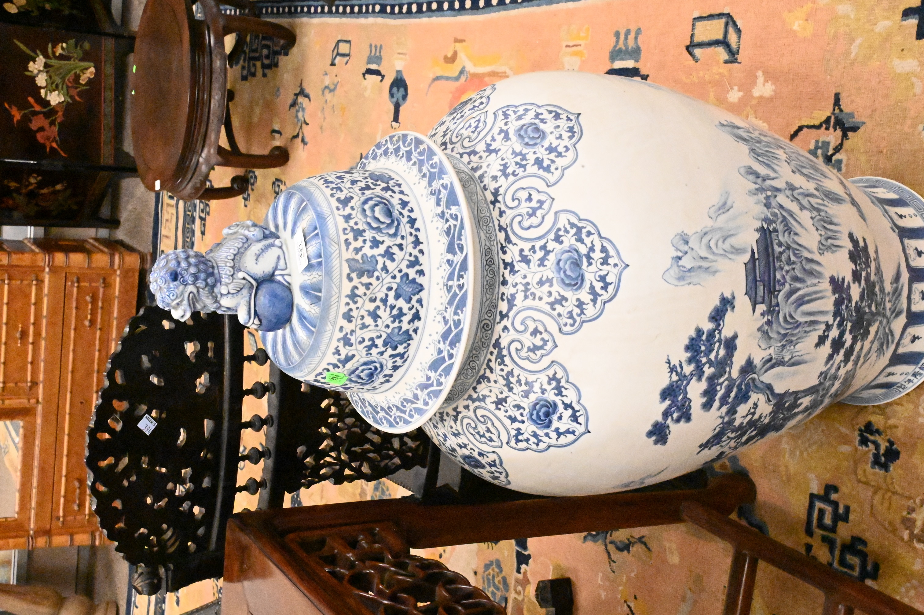 Lot 433: Monumental Chinese Blue and White Covered Vase