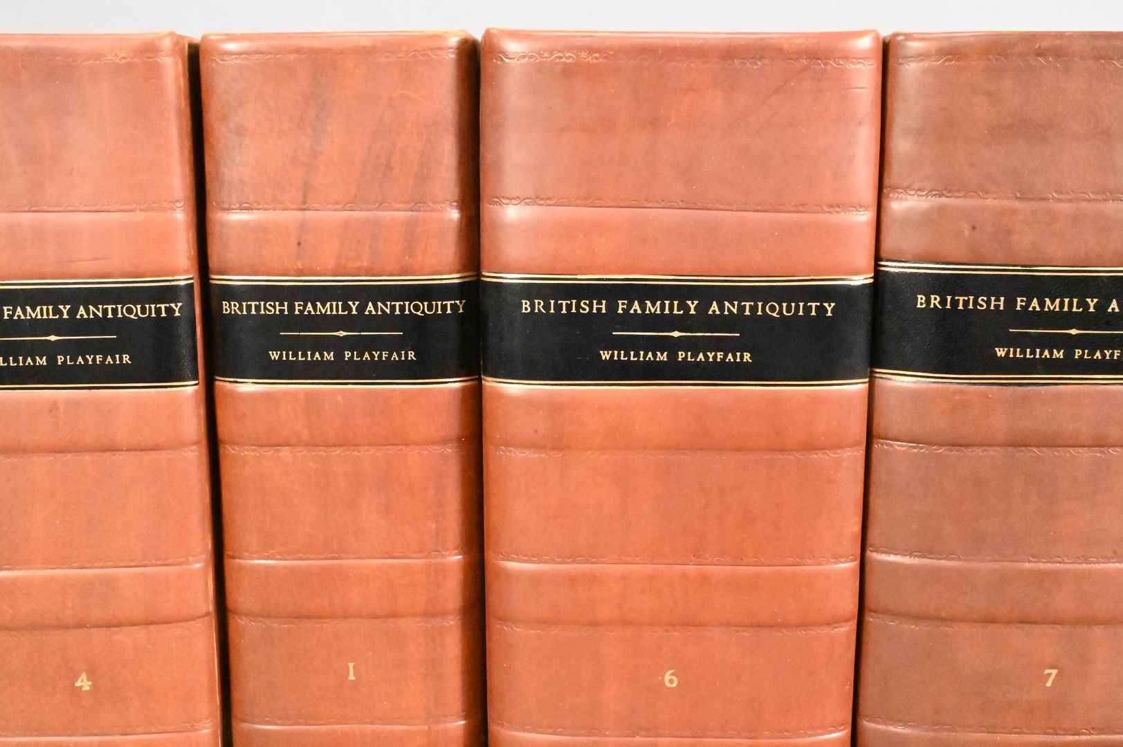 Nine Volume Leatherbound Set of British Antiquity William Playfair Books, 1810, having Hamilton Fish bookplate.