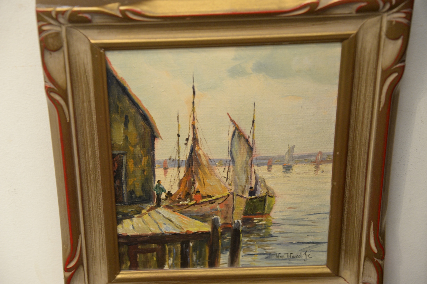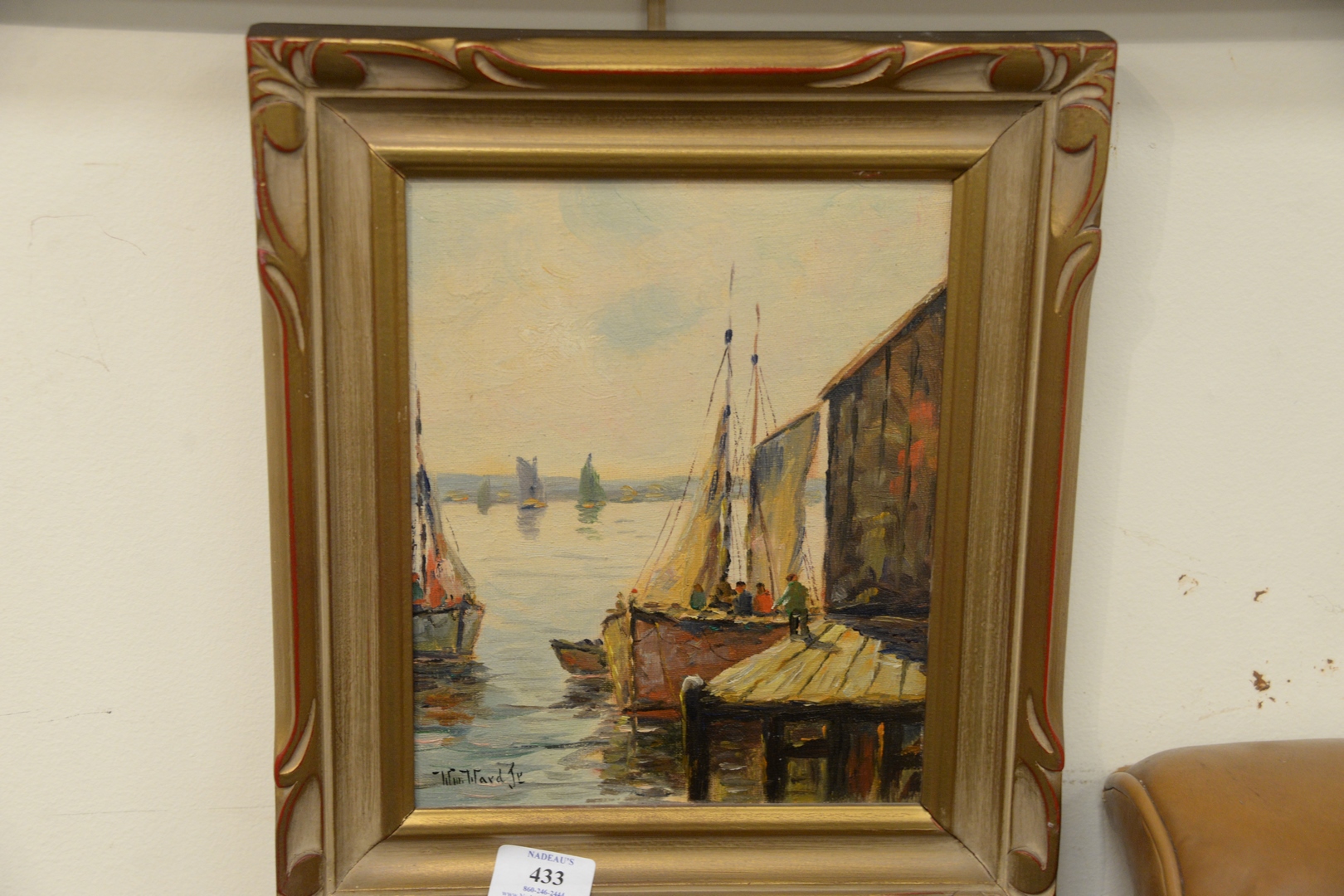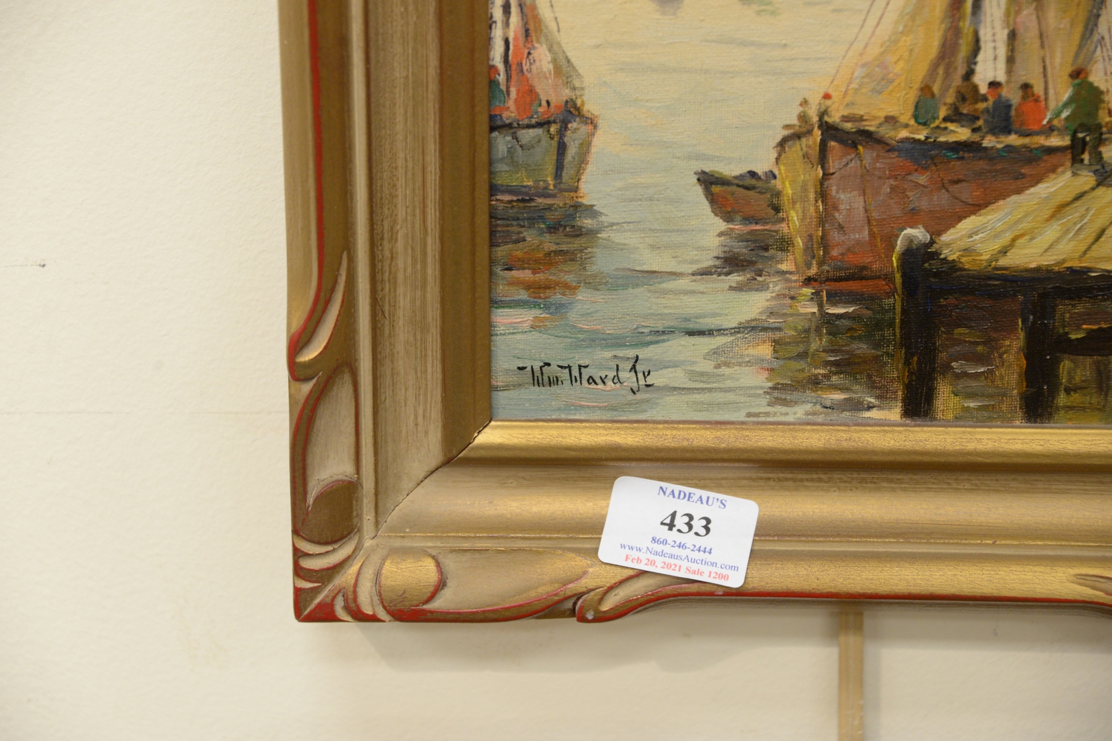 Lot 433: Pair of William Ward Jr. (American, 1911 – 2001) Harbor Scenes, both oils on canvas board, both signed, 10″ x 8″ (each). Provenance: Matthes-Theriault Collection, Woodbridge, Connecticut.