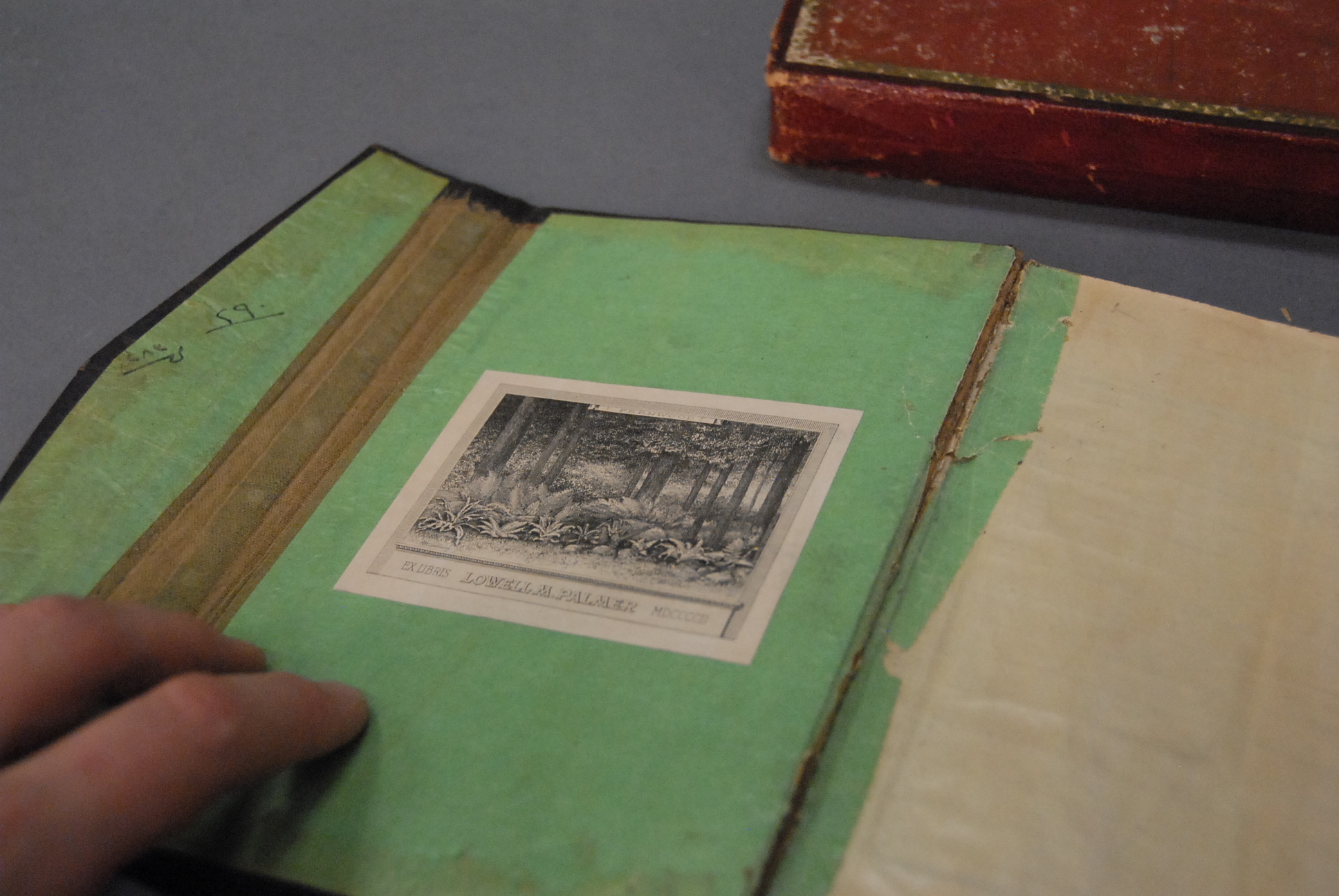 Persian Illuminated Manuscript 17th-18th century in leather binding with three hand painted plates, all writing bordered in gold, from the Lowell Palmer Library.