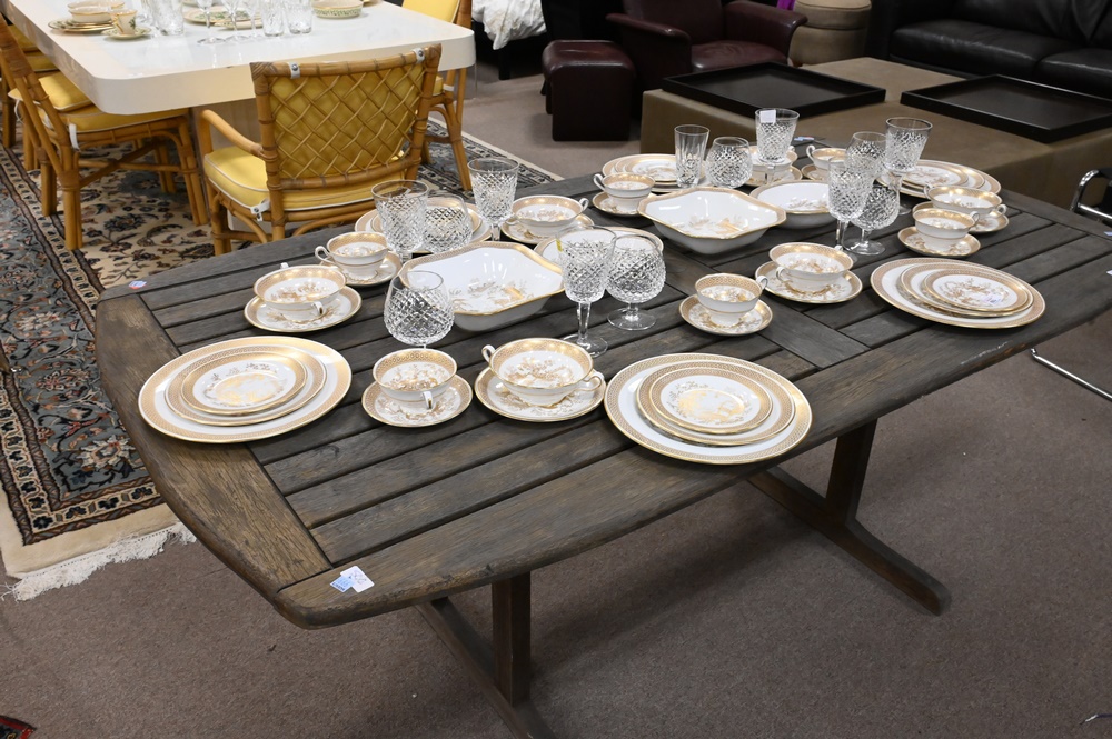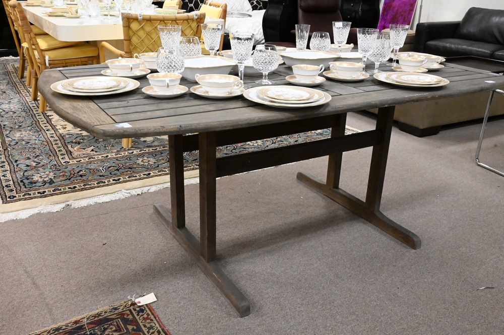 Teak Outdoor Dining Table, (slightly loose), 39″ x 72″.