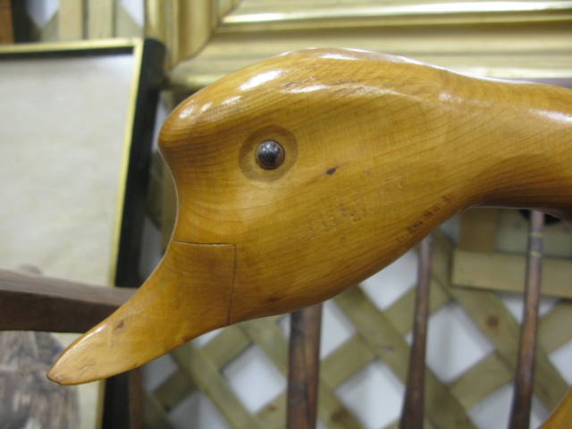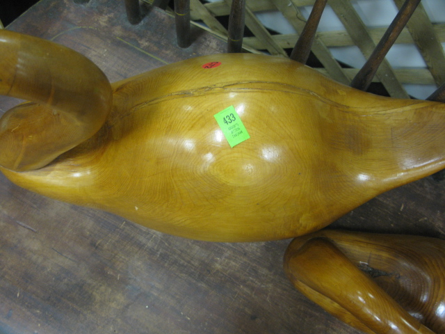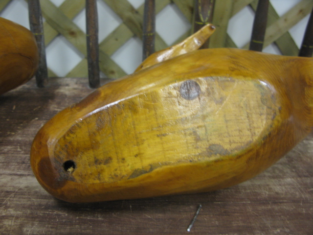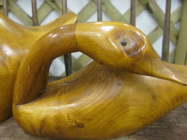 Two natural wood goose decoys two sizes