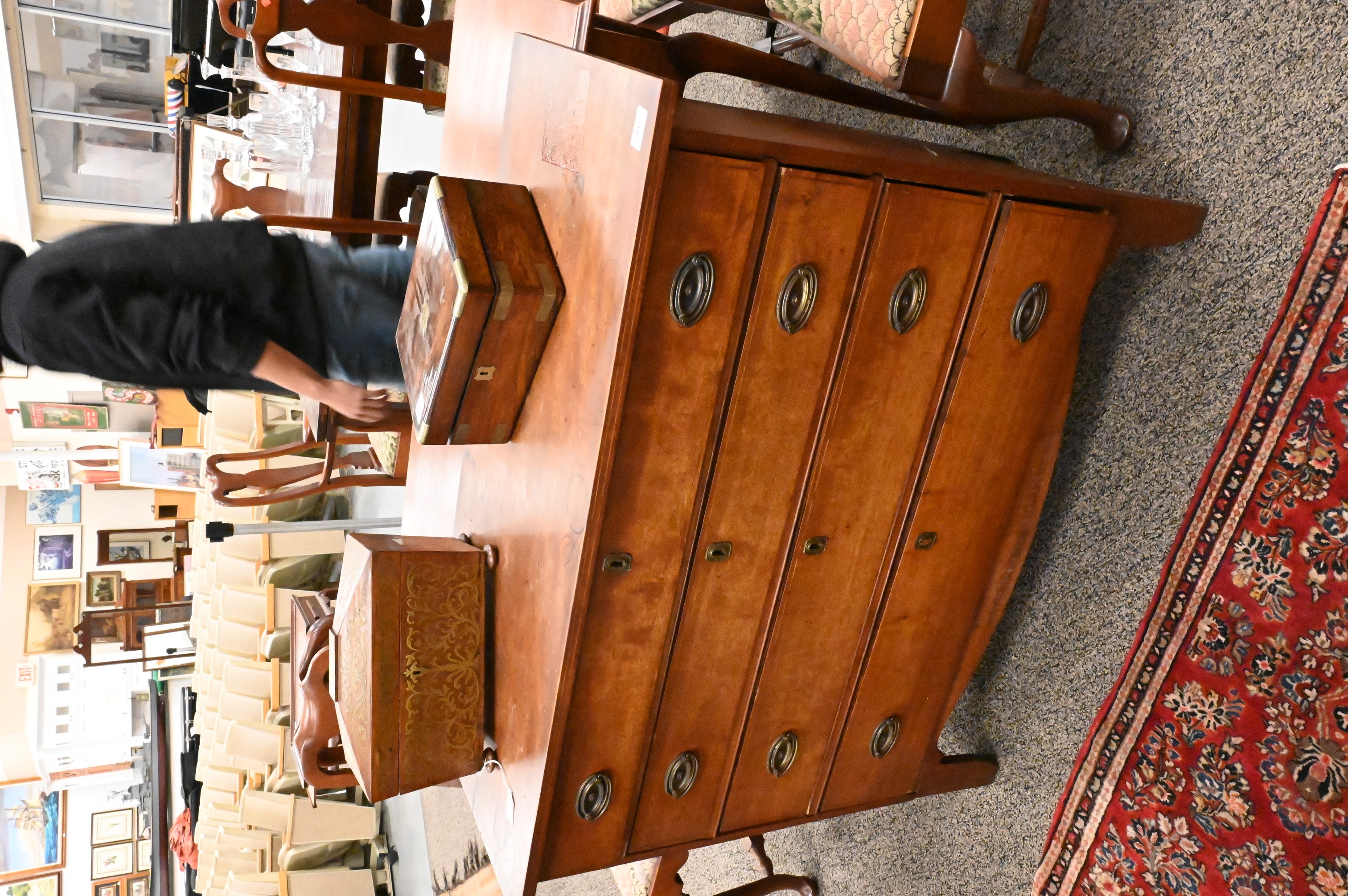 to include Cherry drop leaf table with shaped leaves along with a four drawer federal chest, circa 1800