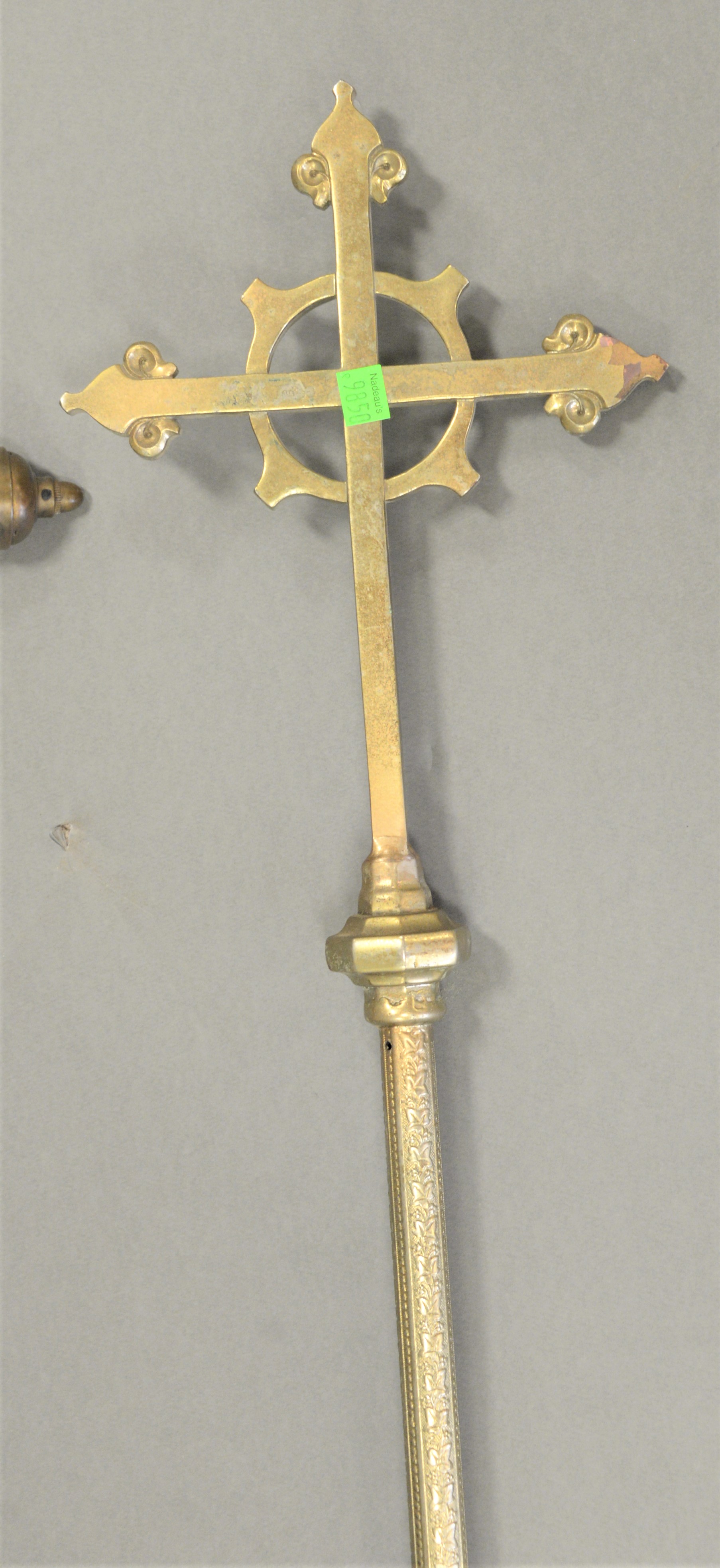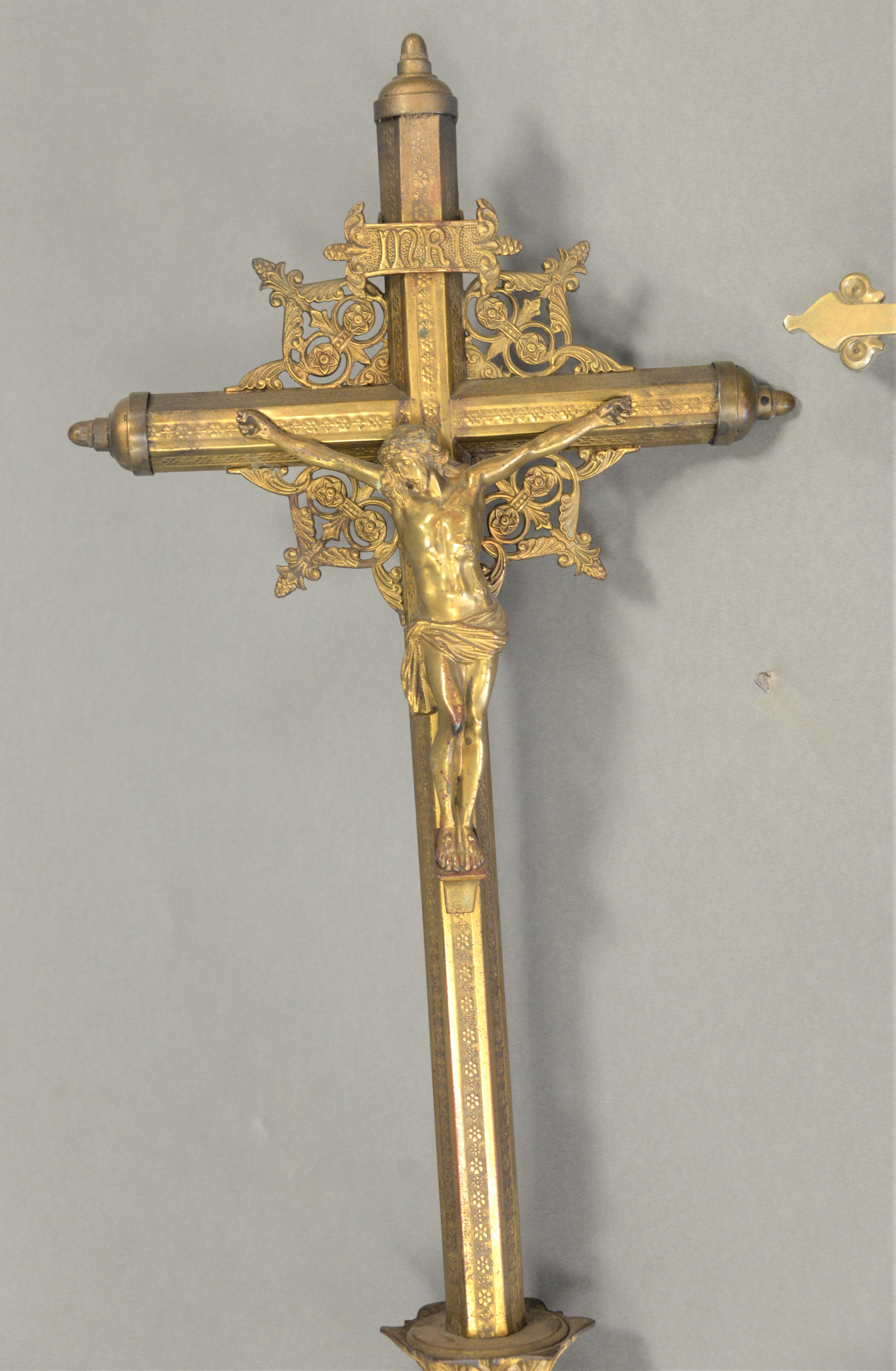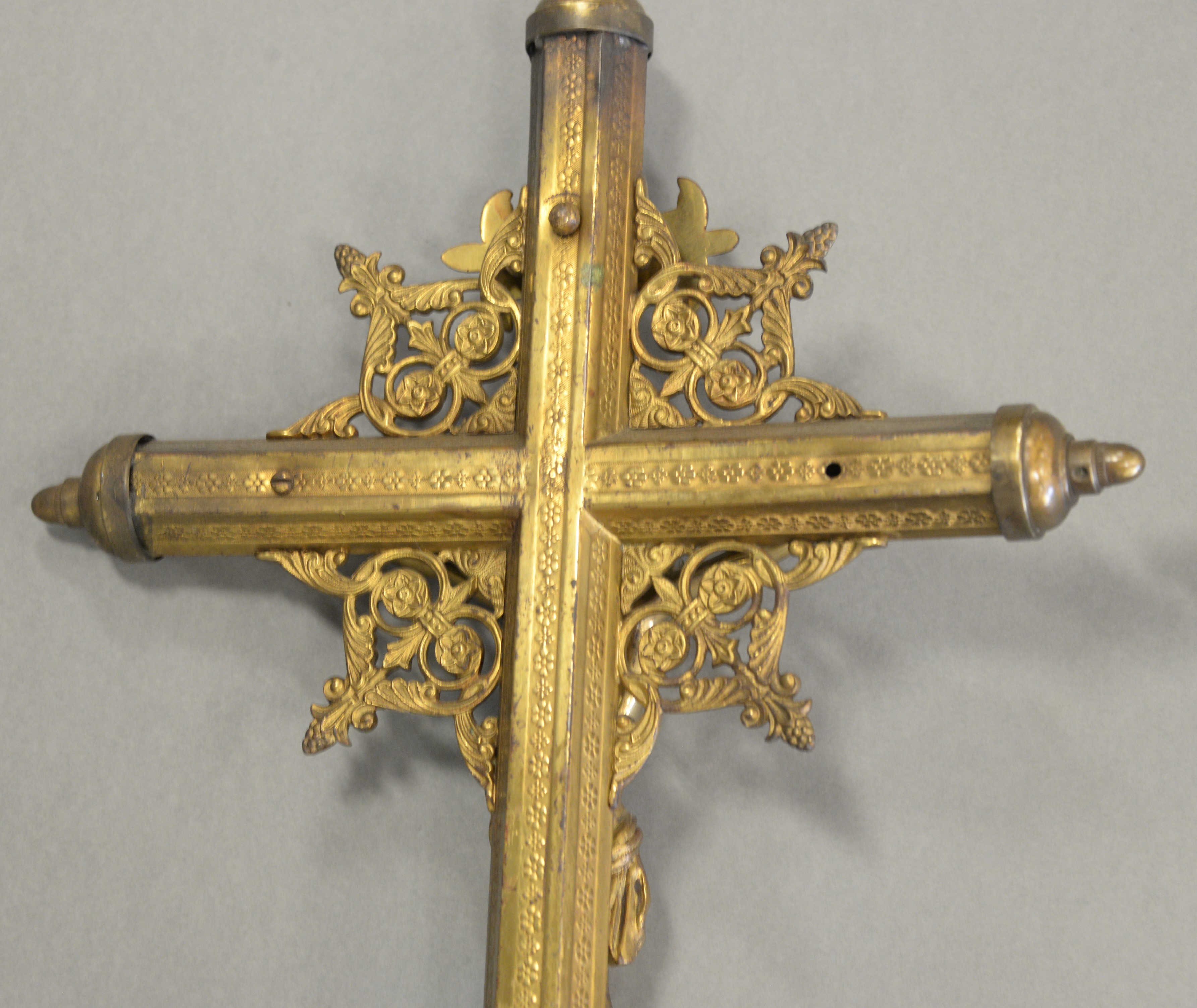 Two Ceremonial Brass Crucifixes, height 72 and 86 inches.