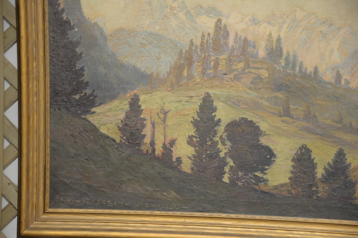 Lot 434: Alexander Scherban 1886-1964 oil on canvas fall landscape signed lower left: Alex Sherban Wien 1920, small tear top left and right…